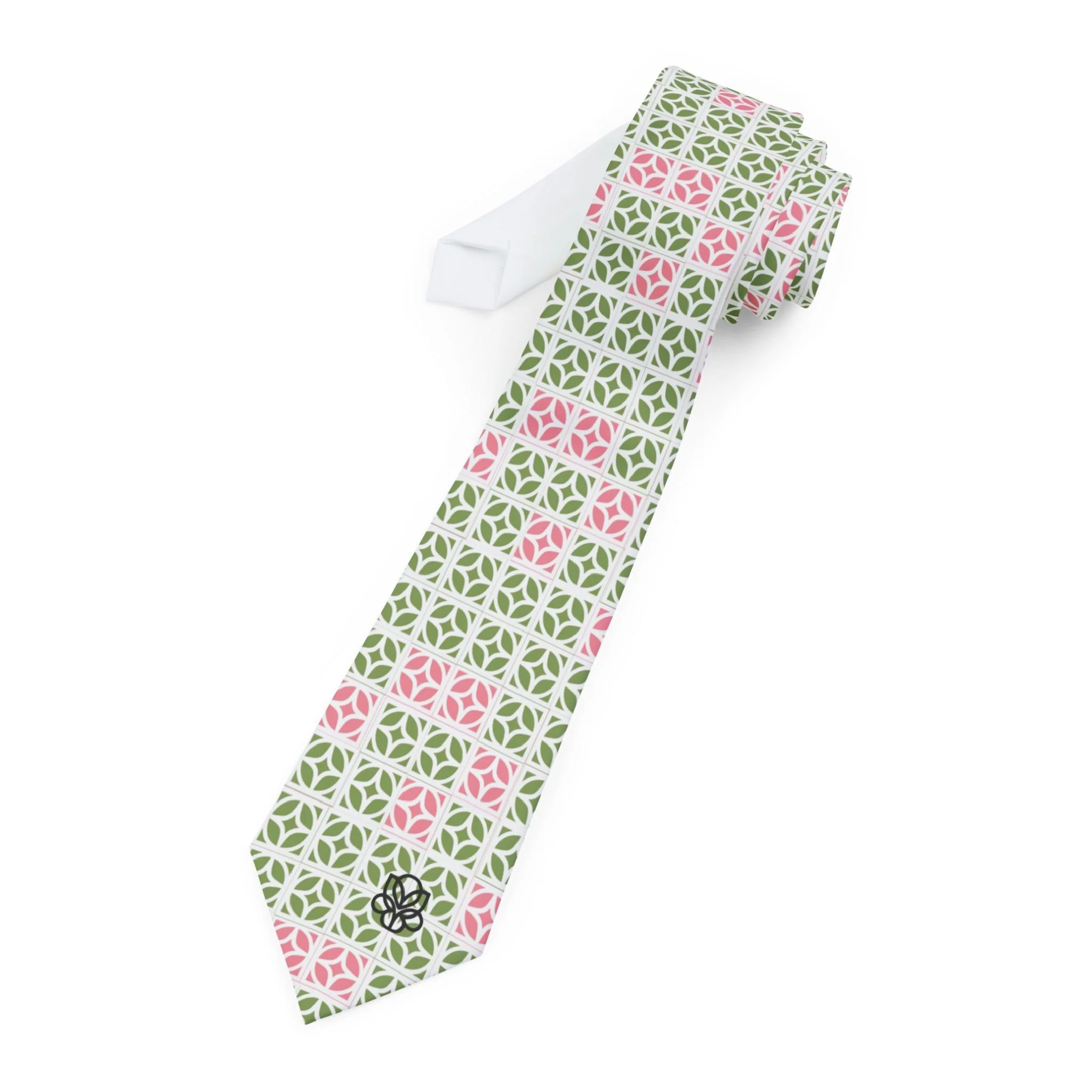 Ceramic pot with abstract painted design in blue, white, and brown tones set against a plain, light background.