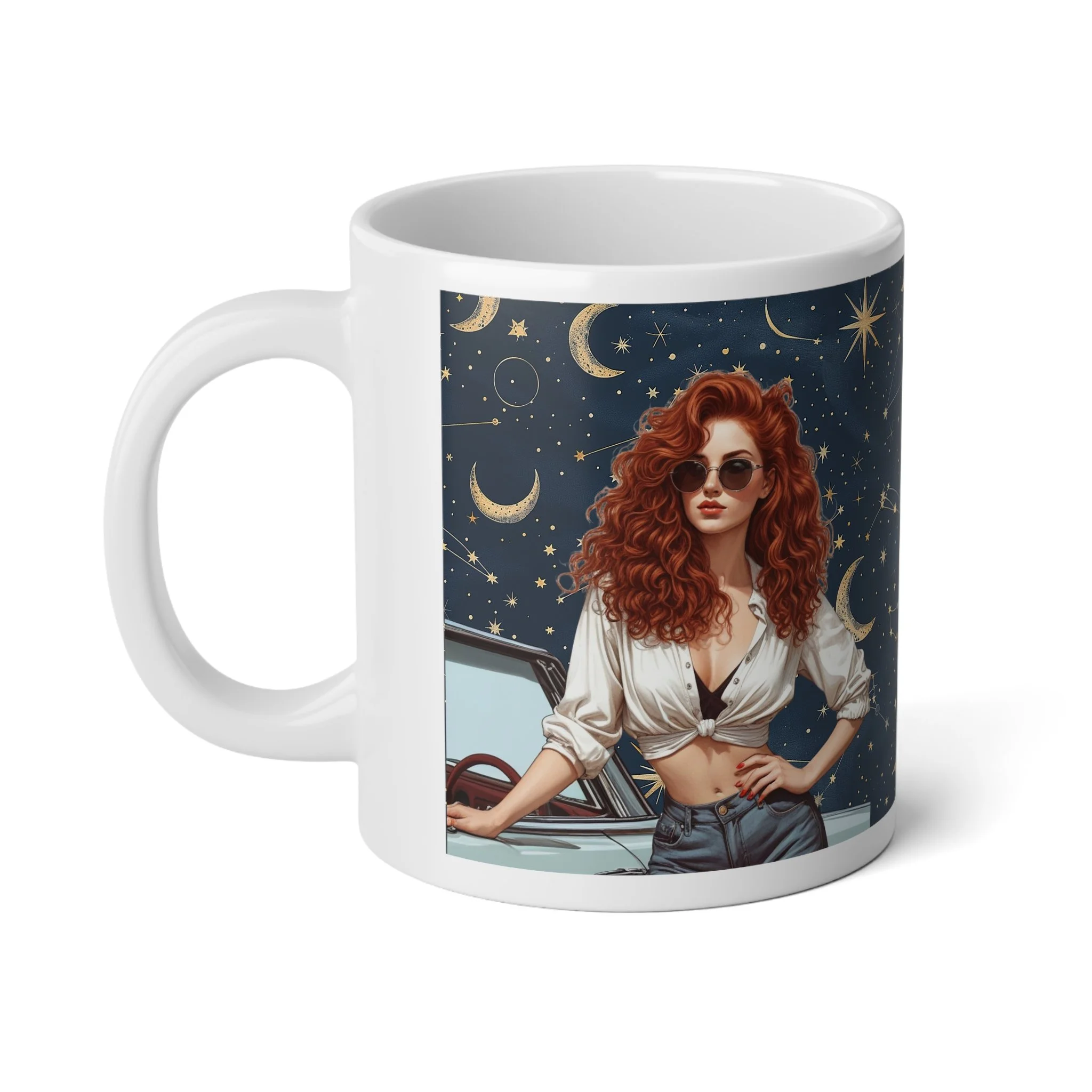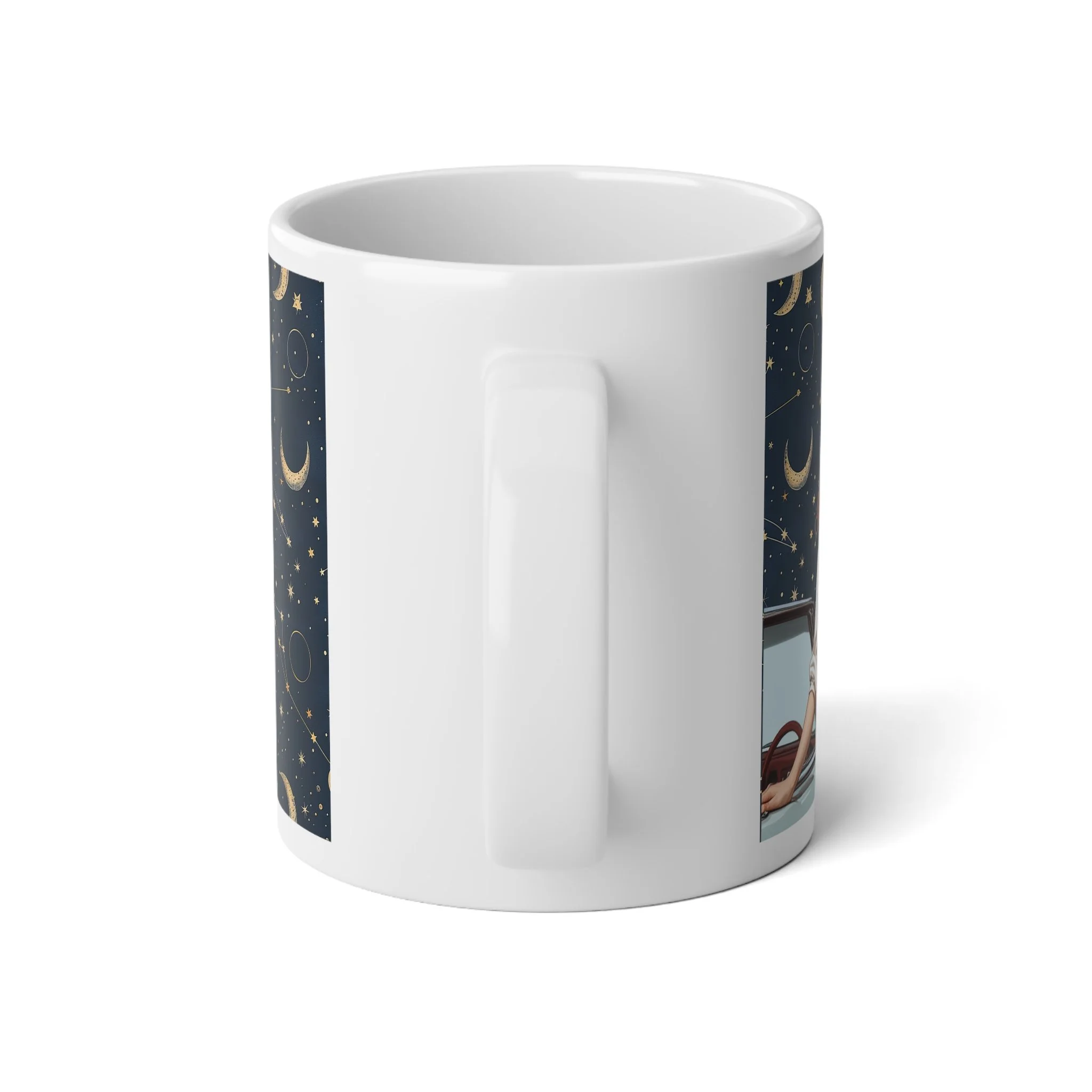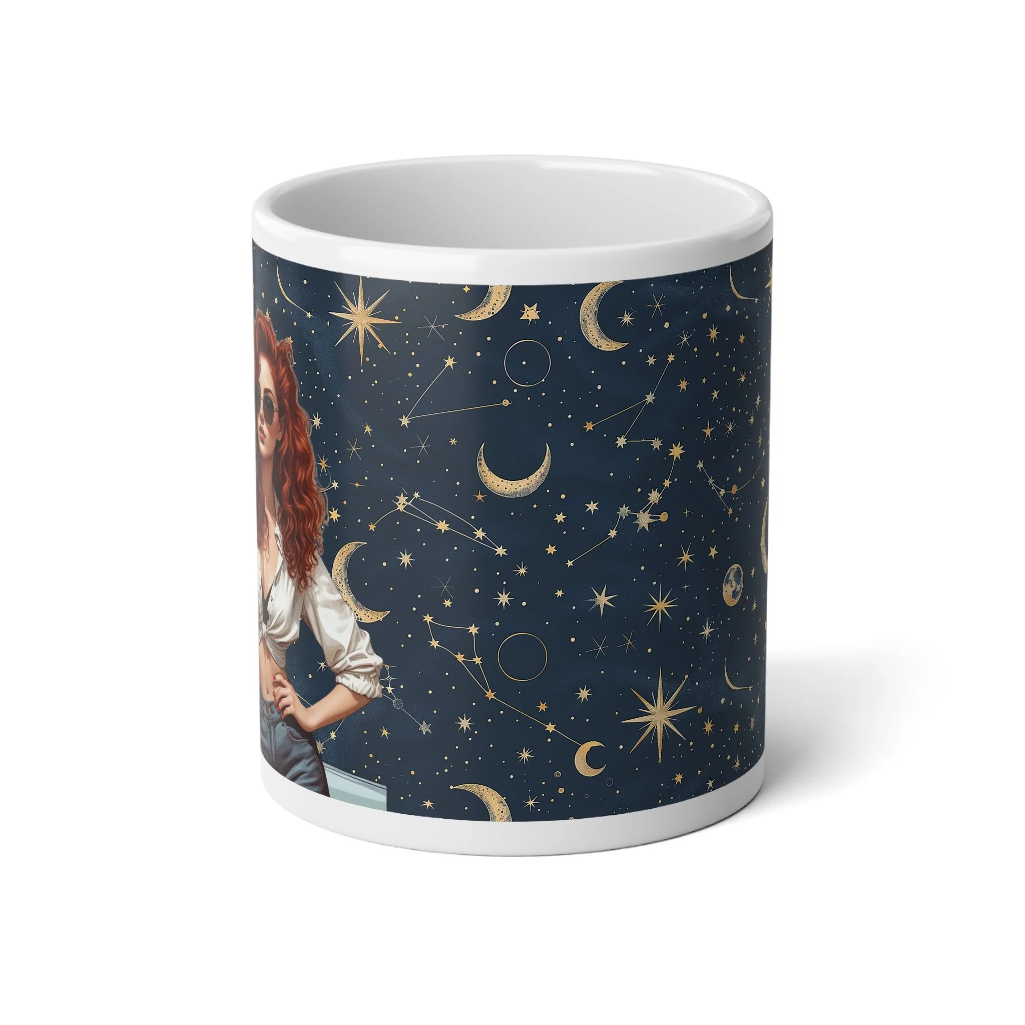 A 20oz glossy ceramic mug wrapped in a deep-night illustration of moons, stars, and soft constellations. The bold, vibrant printing brings out gold accents and midnight blues while a comfortable C-shaped handle keeps your hold steady through long mornings or late-night journaling sessions. Durable ORCA coating locks in color and detail, while microwave and dishwasher safety make daily use effortless. This mug feels like a little ritual—warm tea, a favorite chair, and the quiet company of the cosmos.