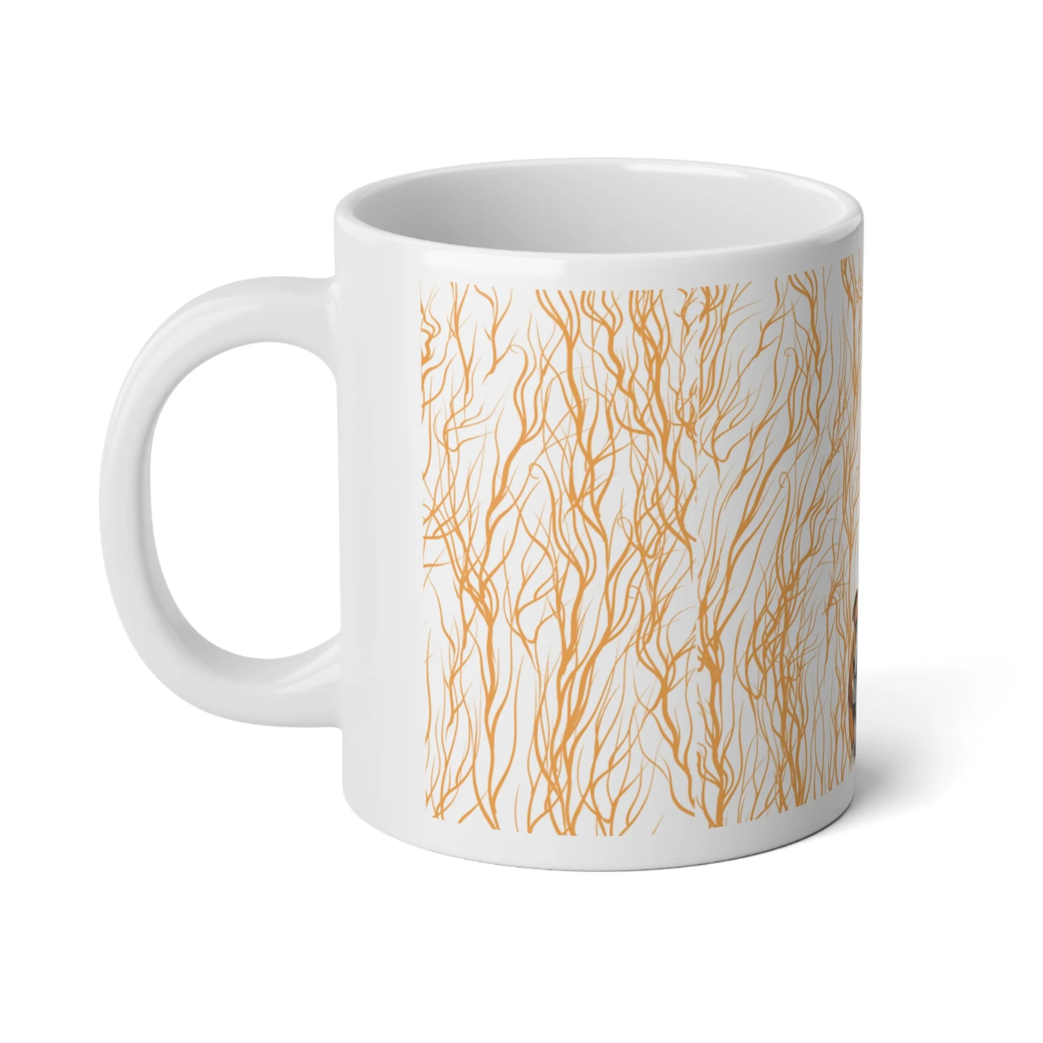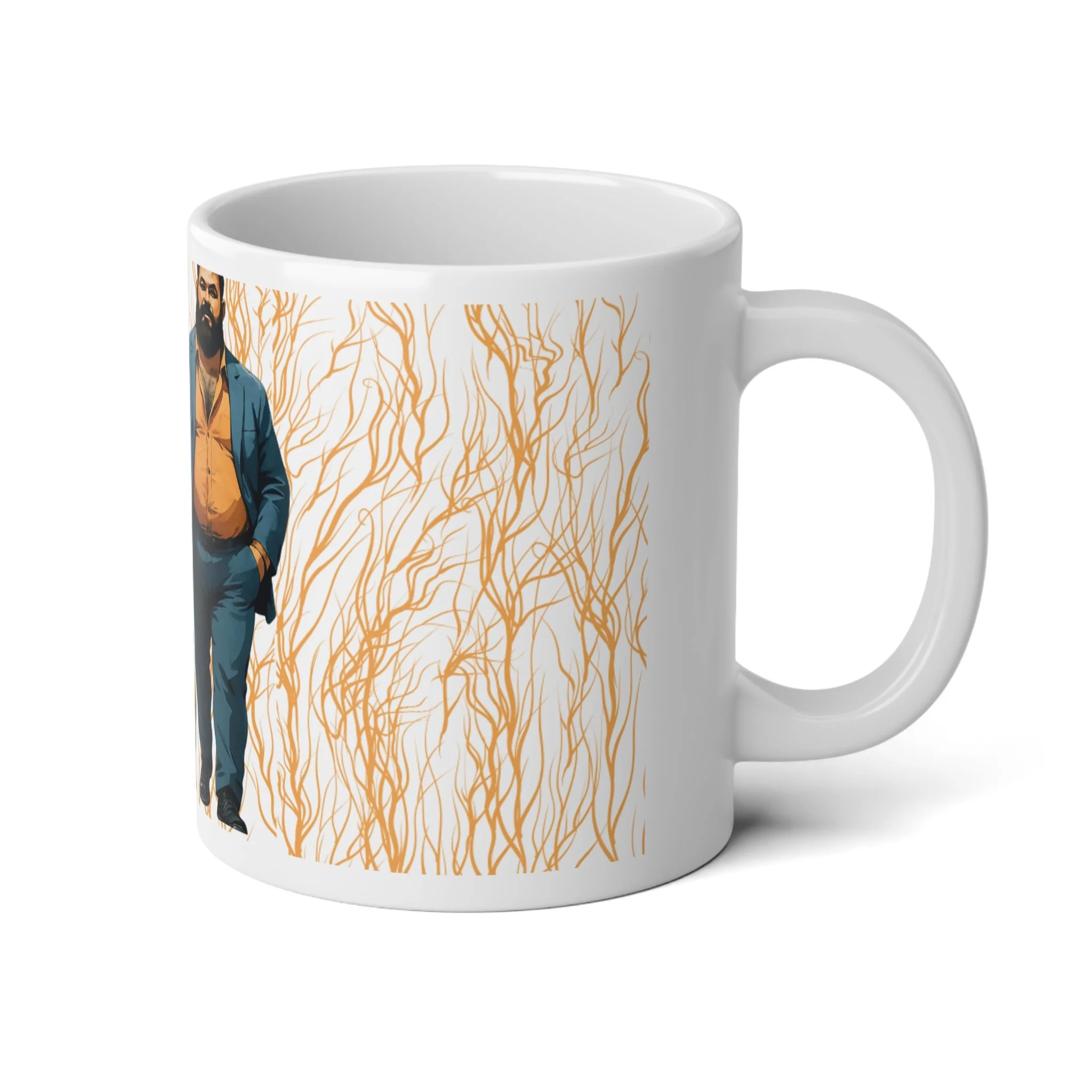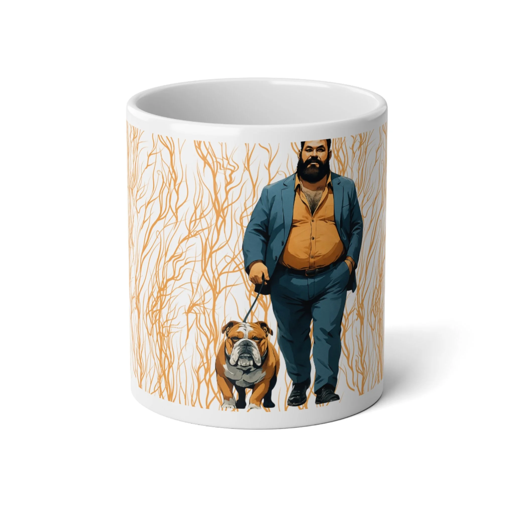 This 20oz ceramic mug brings character to every slow morning and late-night chat. A bold illustrated figure and his steadfast bulldog stride across a warm, hand-drawn backdrop — a scene that feels like a story unfolding over coffee. The glossy finish and vibrant ORCA print keep colors rich and lines crisp, while the generous size holds long pours and leave room for a second helping of cream. It sits comfortably in the hand with a C-shaped handle and stands up to daily use — microwave-safe for quick reheats and dishwasher-safe for easy cleanup. Bright, tactile, and a little bit cinematic, this mug turns everyday sips into small moments of companionship and calm.