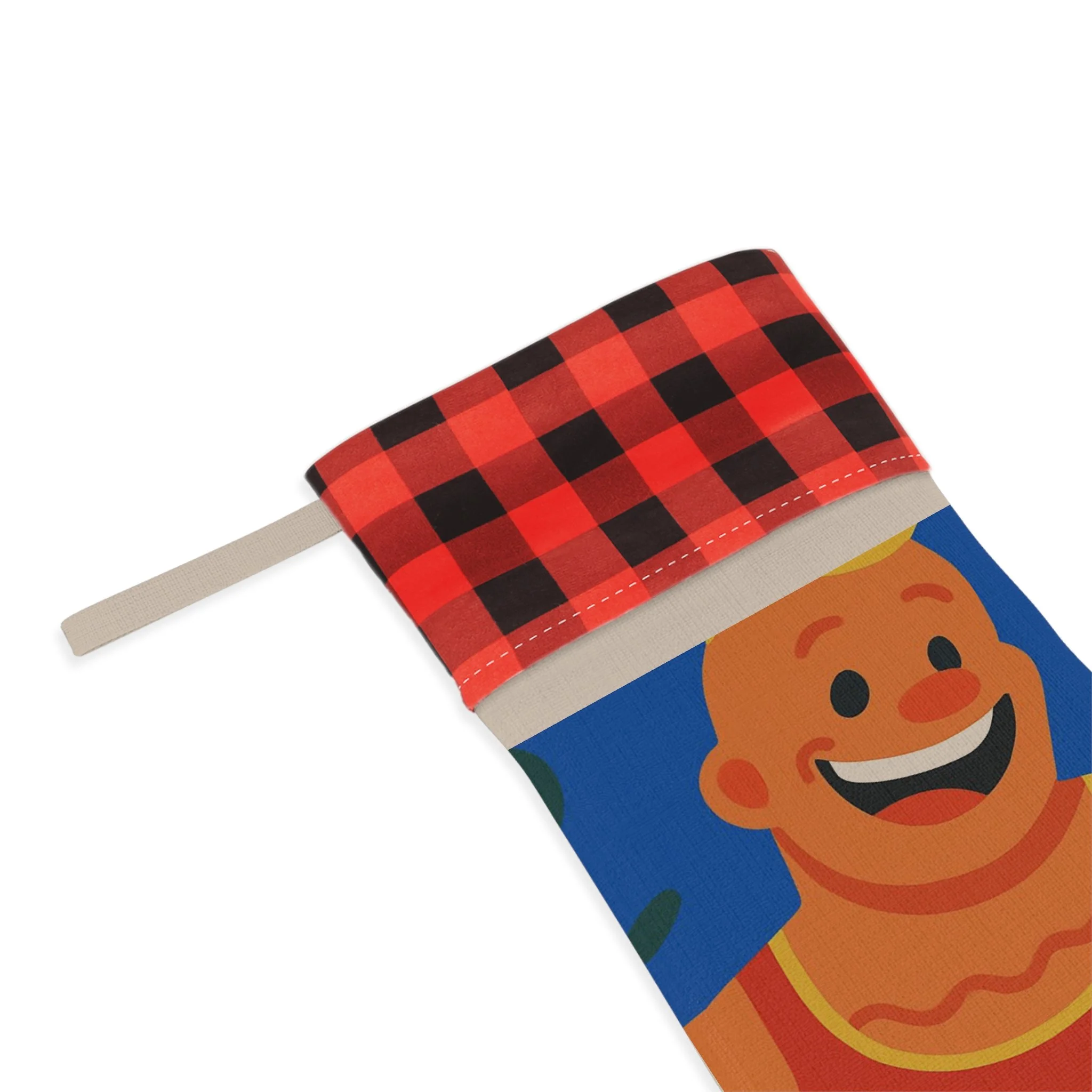 Bring a warm, homespun note to holiday decorating with this roomy linen Christmas stocking. The natural linen boot feels light and textured, while the bold plaid cuff—available in red/black or white/black—adds a vintage, cabin-style contrast. A generous interior swallows treats and little surprises, and the stitched hanging loop makes it effortless to display on mantels, stair rails, or a cozy hook by the fireplace. The one-sided print gives a playful, colorful scene on the front while the back keeps a calm, neutral linen look, letting the stocking blend into both rustic and modern holiday schemes.