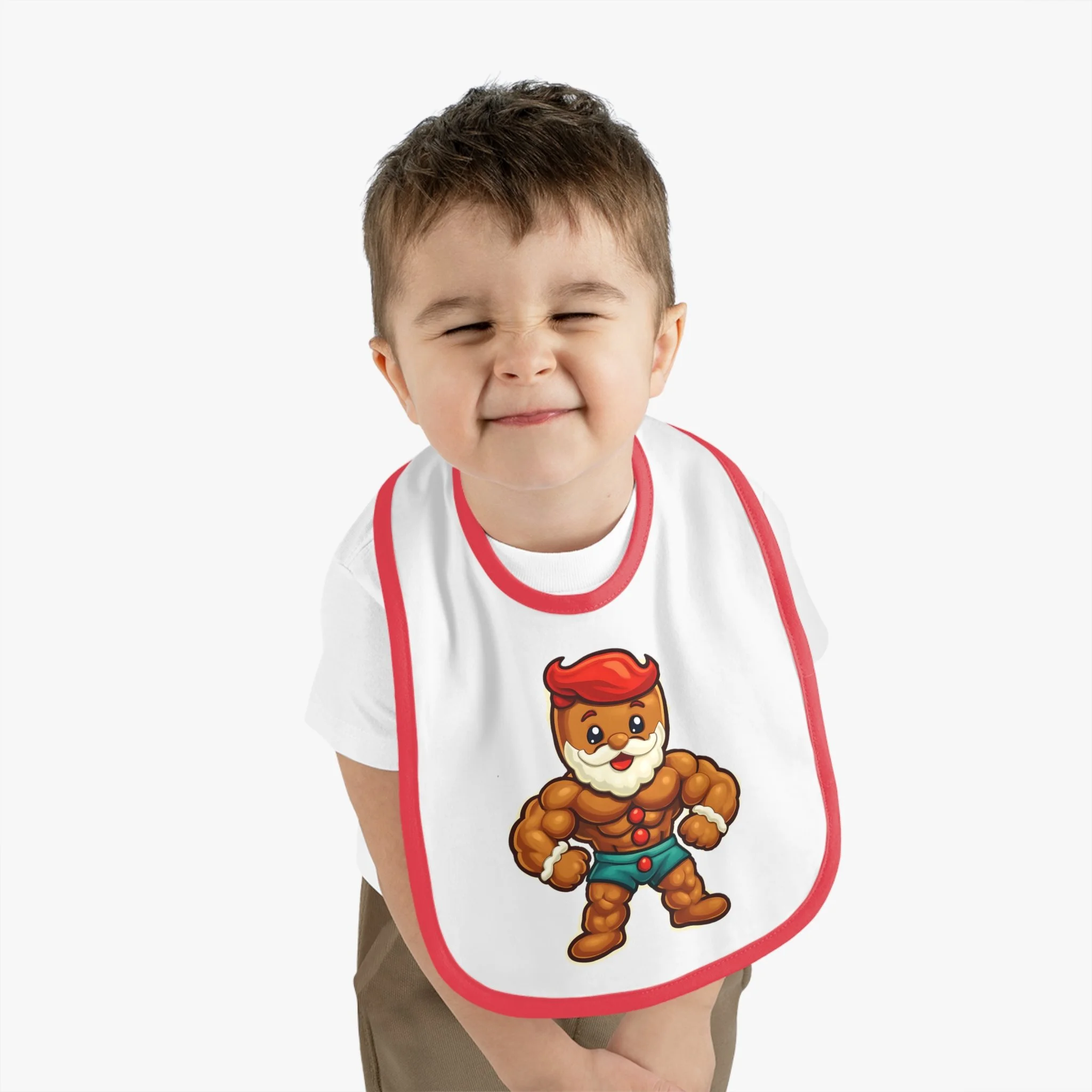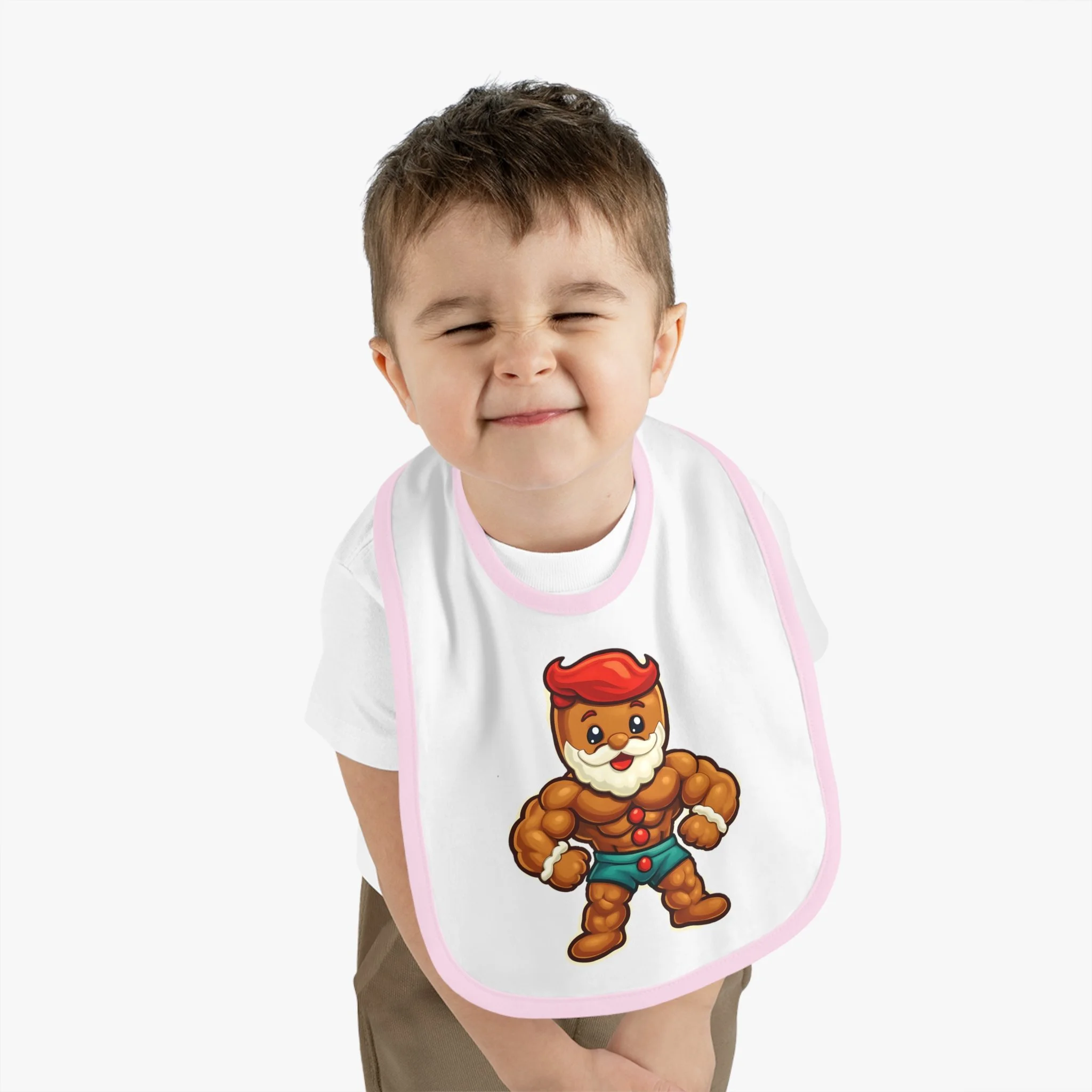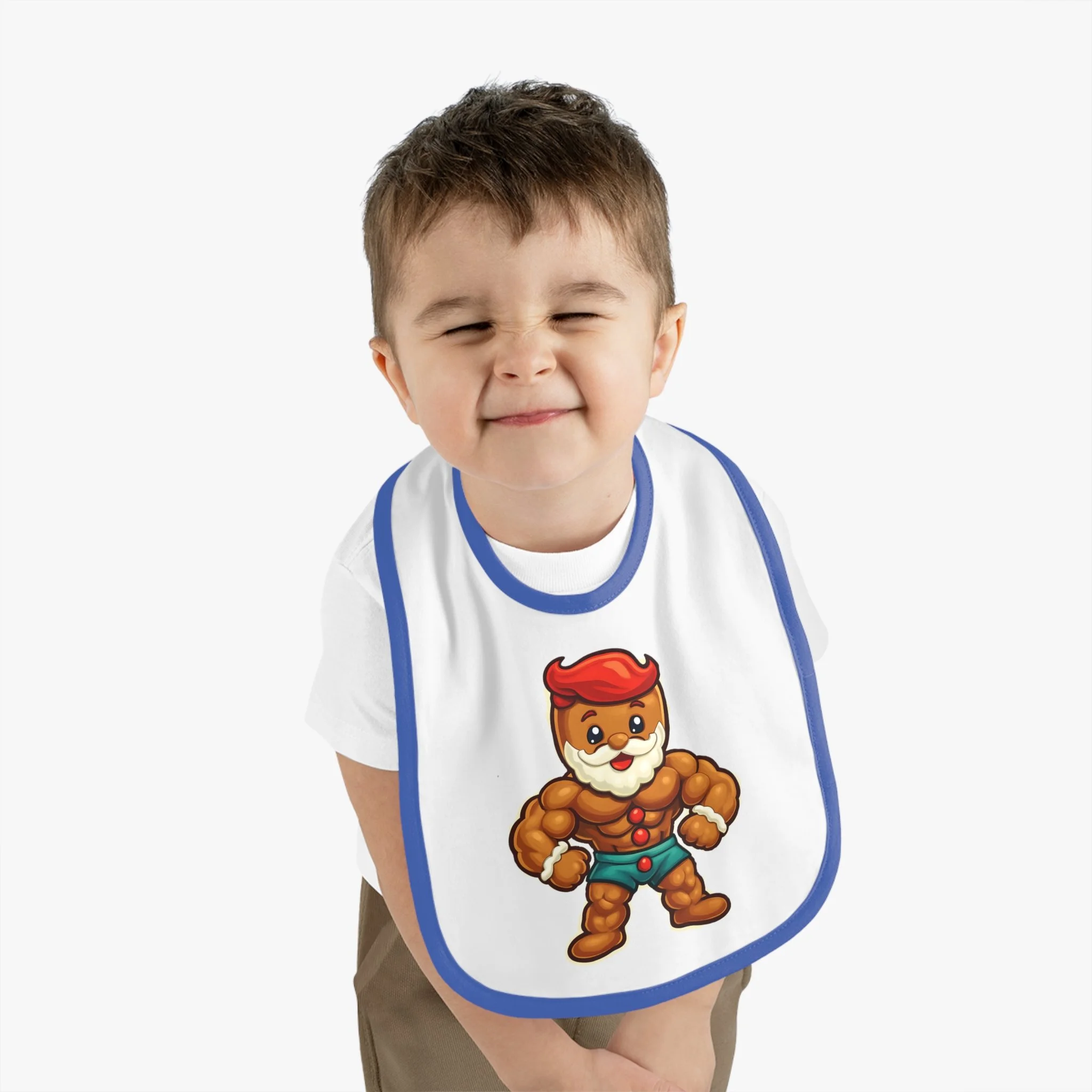 Soft, sturdy baby bib with a playful, muscle-bound elf illustration that brings a wink of humor to mealtimes. The contrast trim frames the design and adds a pop of color while the smooth ringspun cotton feels gentle against delicate skin. A reinforced Velcro® closure makes dressing quick, and the EasyTear™ label keeps things comfortable. It’s the kind of small, silly detail that turns everyday messes into moments of delight — whether for cozy family breakfasts, holiday photos, or just a cheerful lunchtime at home.