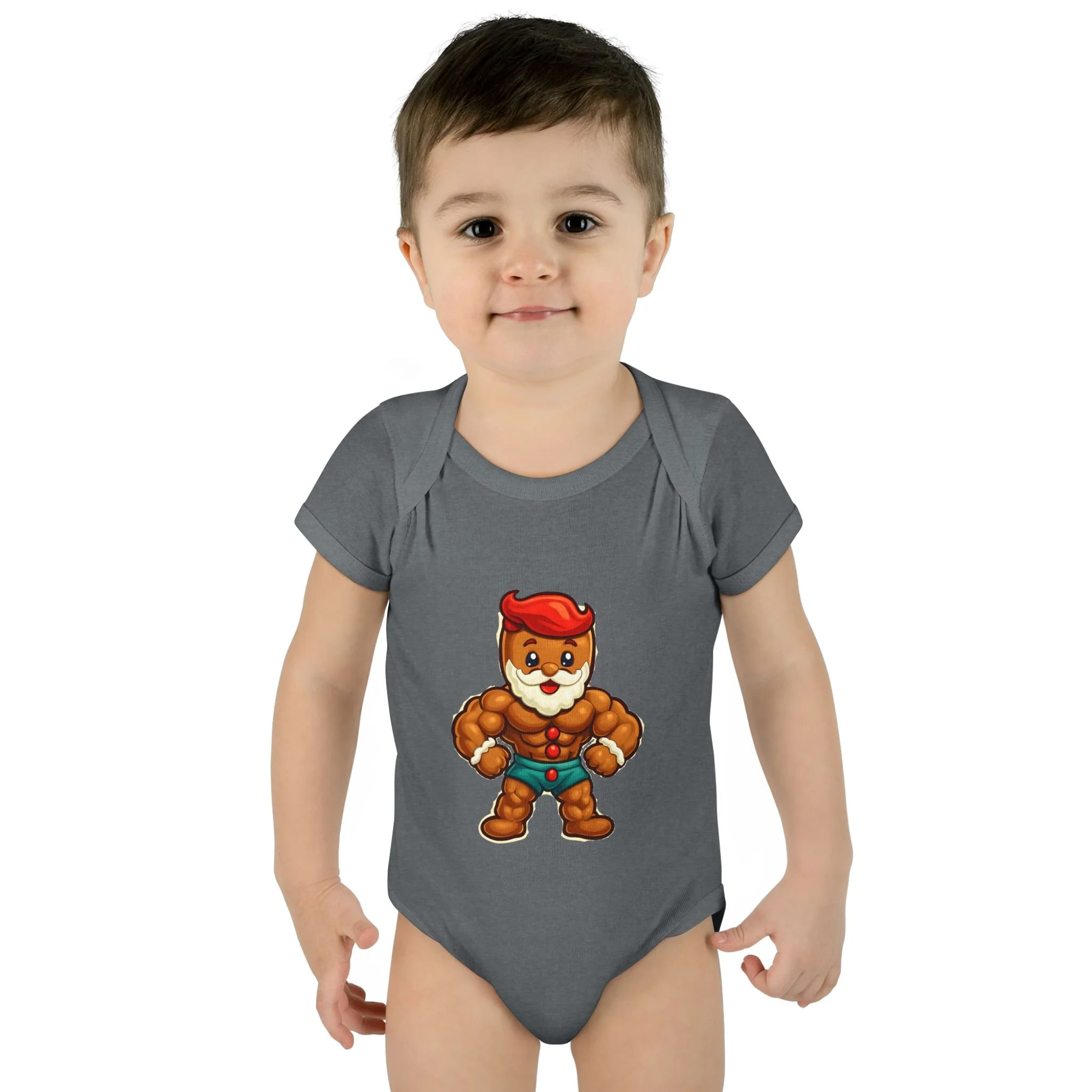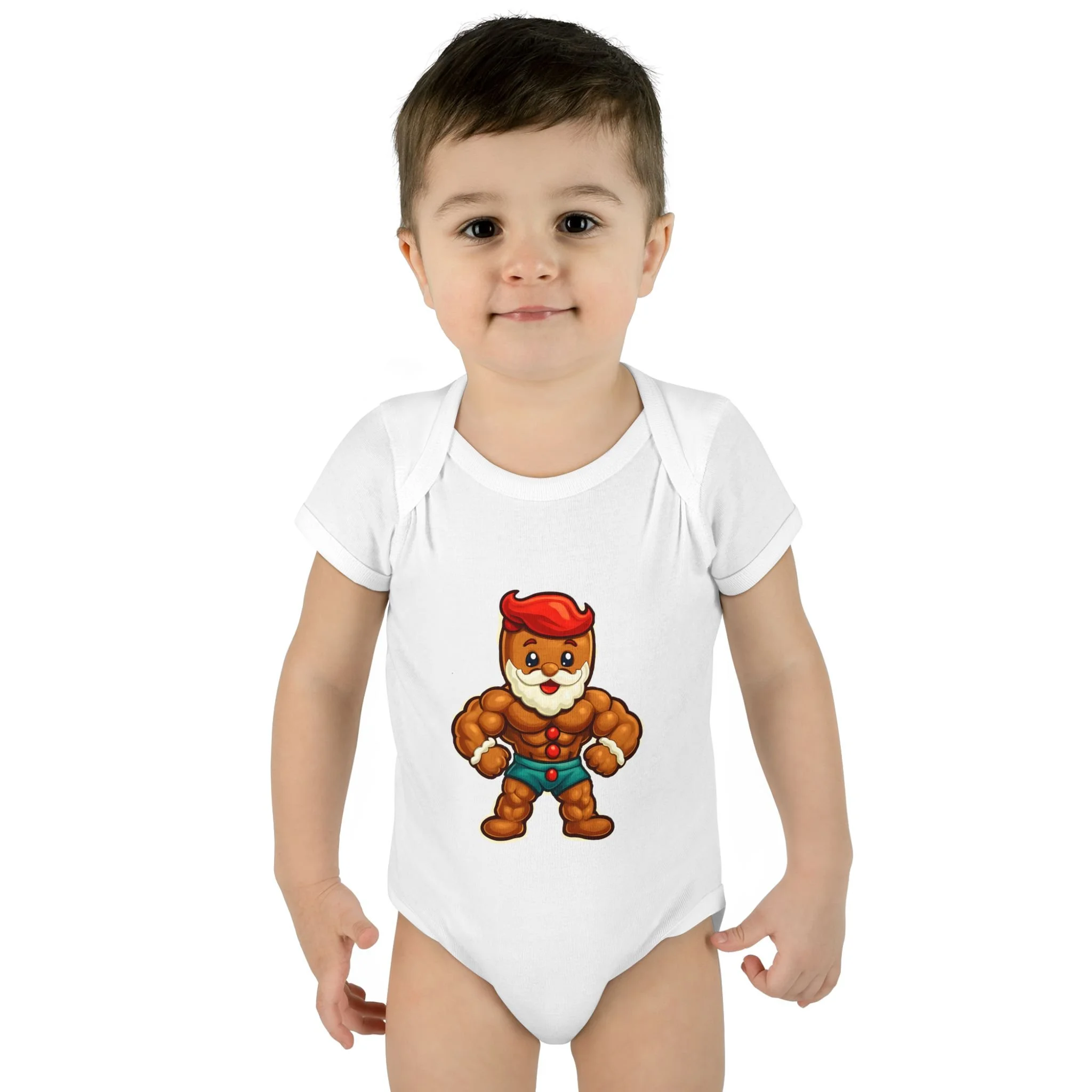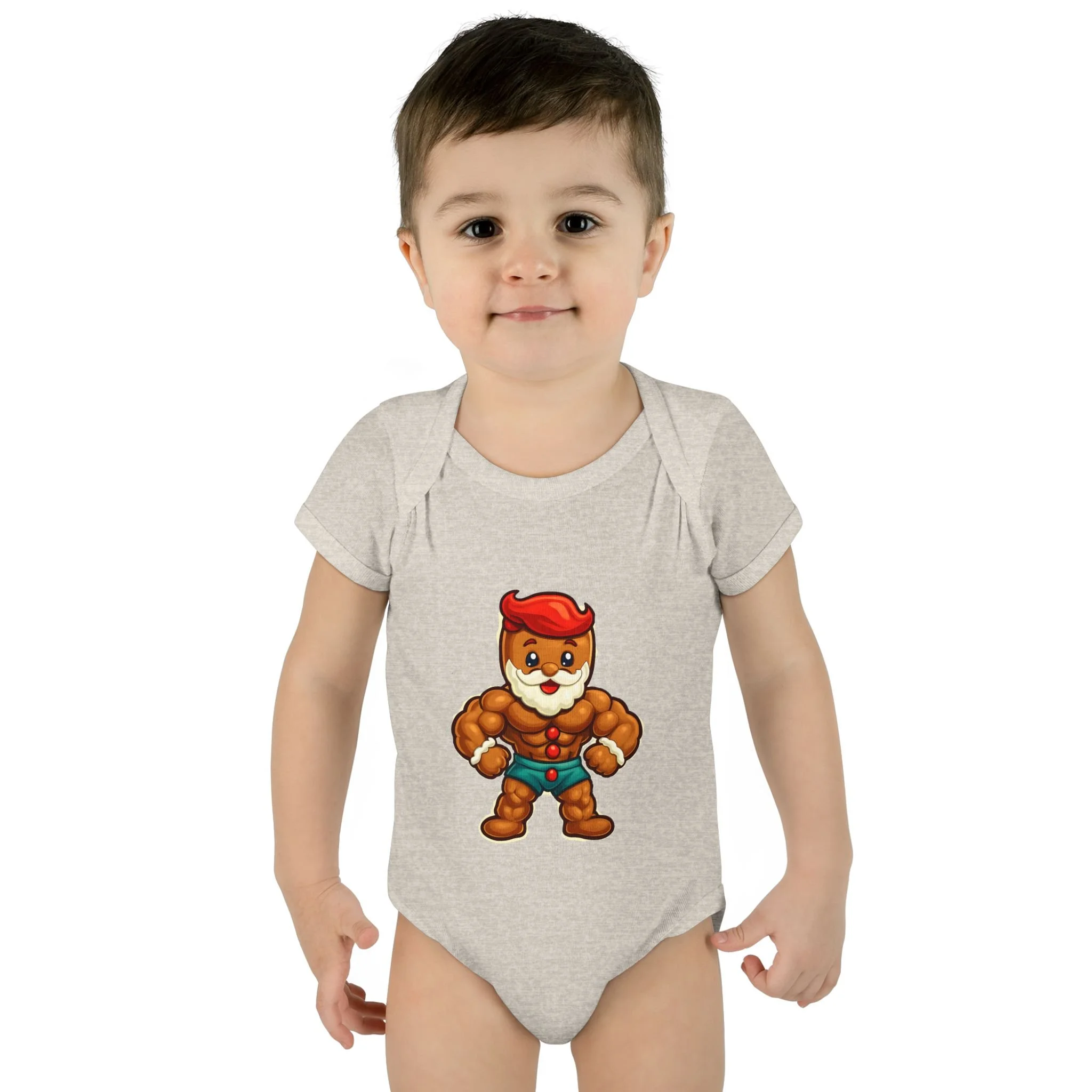Soft, stretchy ribbed cotton hugs tiny shoulders while a bold, playful ginger-hero print brings instant smiles. This lightweight infant bodysuit slips on easily thanks to a lap shoulder and stays snug through tumbles with 1x1 rib knit and reinforced double-needle binding. Three-snap closure lies smooth against baby skin. Breathable combed ringspun cotton keeps little ones comfortable from morning cuddles to evening stories, and the tear-away label means no scratchy tags. Wear it at holiday photos, family meetups, or lazy days at home — it’s built for cuddles, antics, and those small moments that become big memories.