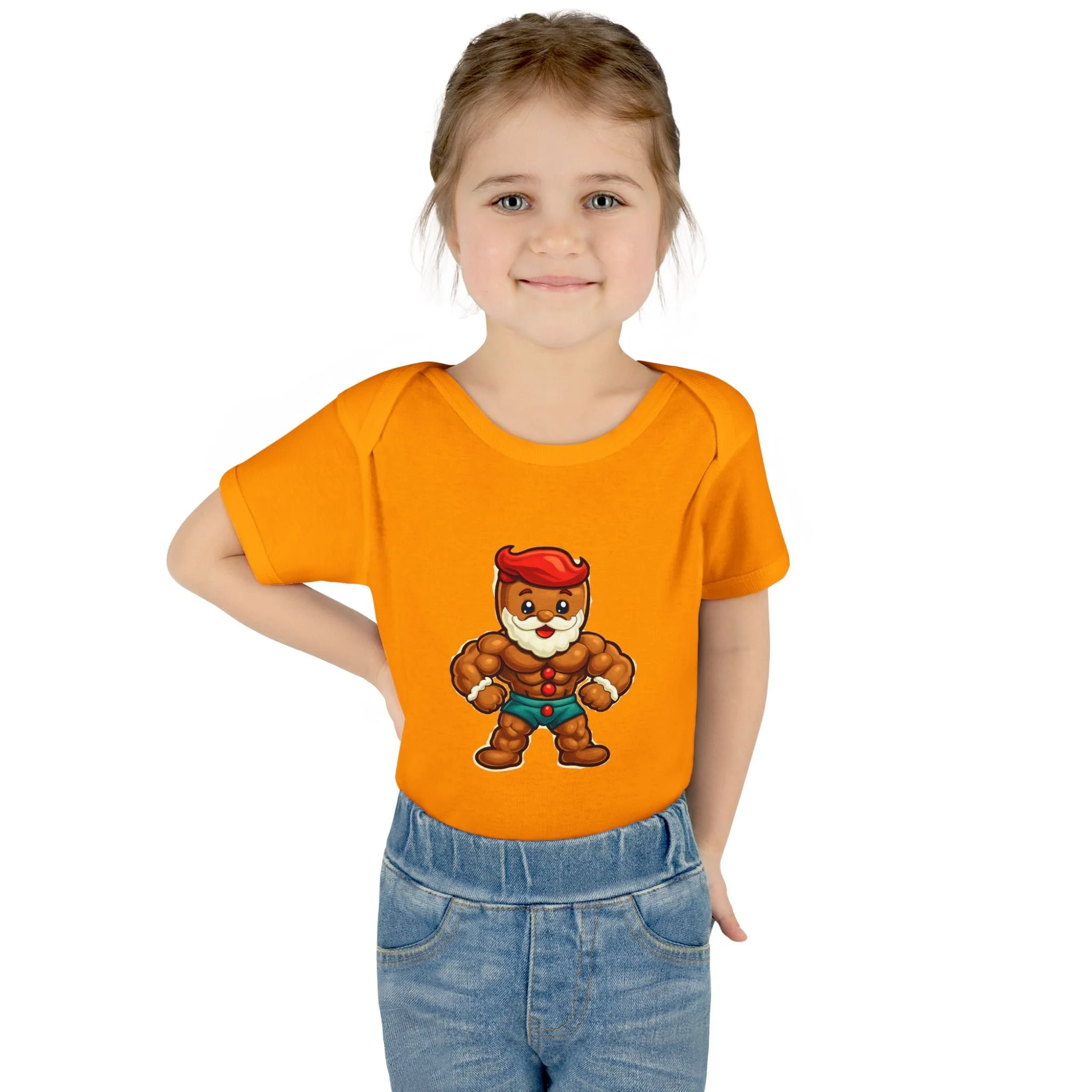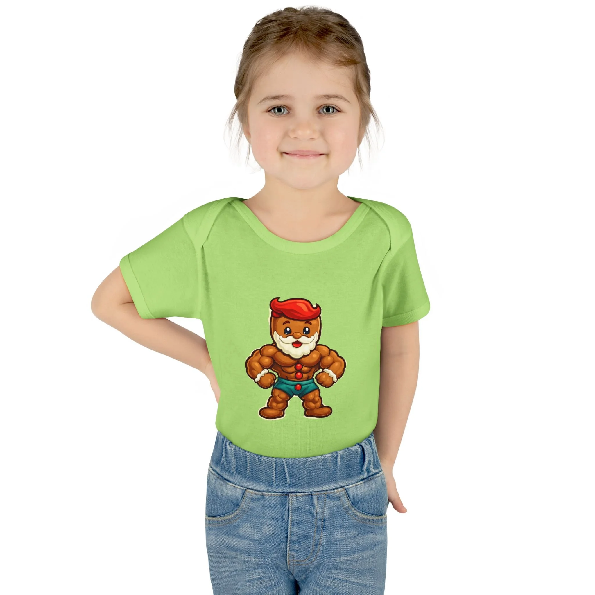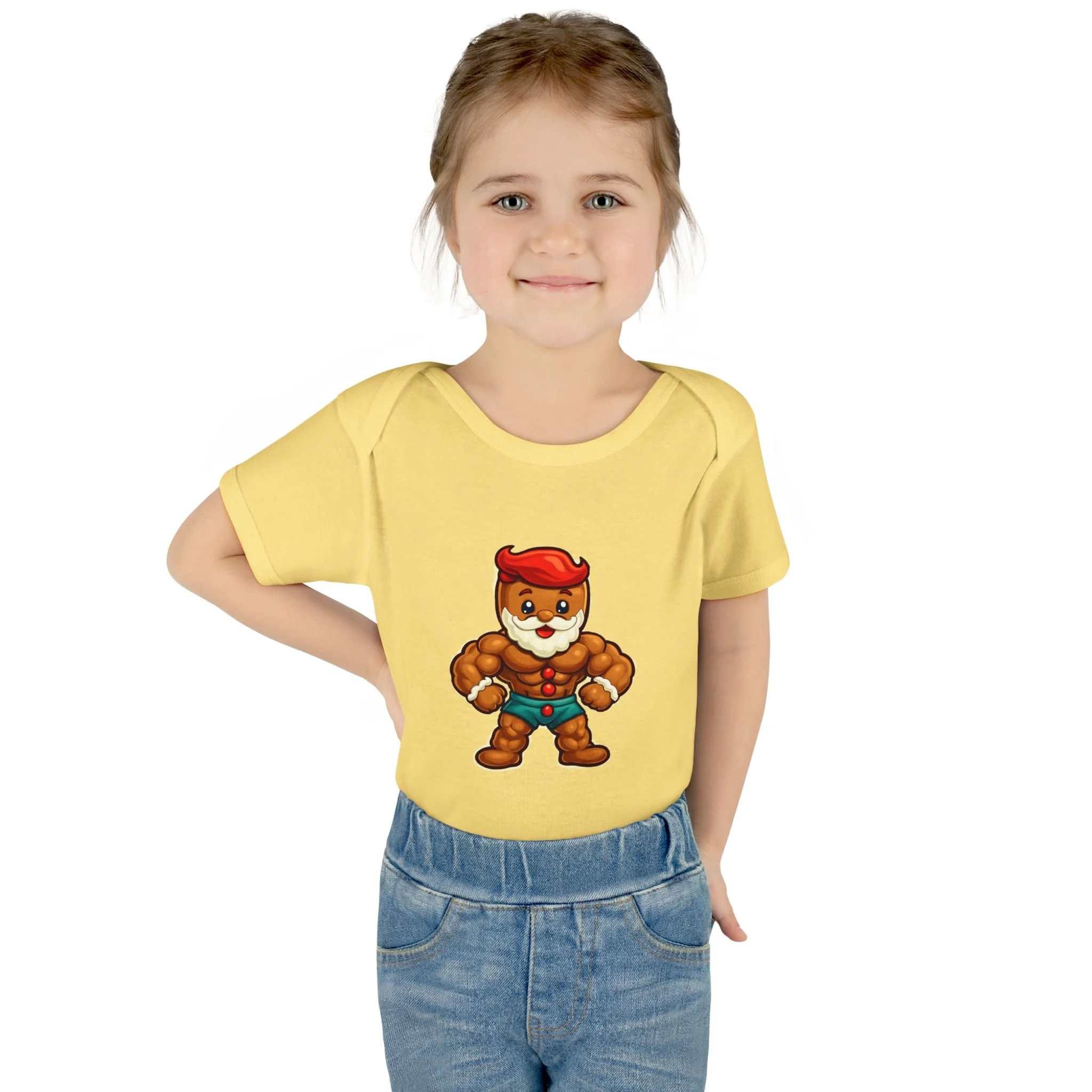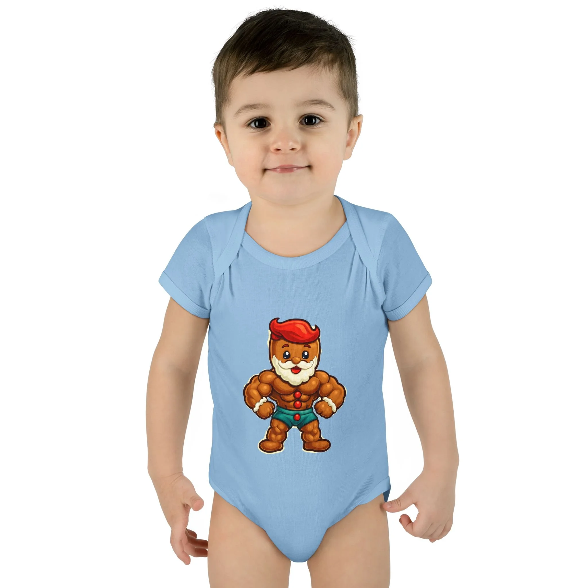 Soft, stretchy ribbed cotton hugs tiny shoulders while a bold, playful ginger-hero print brings instant smiles. This lightweight infant bodysuit slips on easily thanks to a lap shoulder and stays snug through tumbles with 1x1 rib knit and reinforced double-needle binding. Three-snap closure lies smooth against baby skin. Breathable combed ringspun cotton keeps little ones comfortable from morning cuddles to evening stories, and the tear-away label means no scratchy tags. Wear it at holiday photos, family meetups, or lazy days at home — it’s built for cuddles, antics, and those small moments that become big memories.