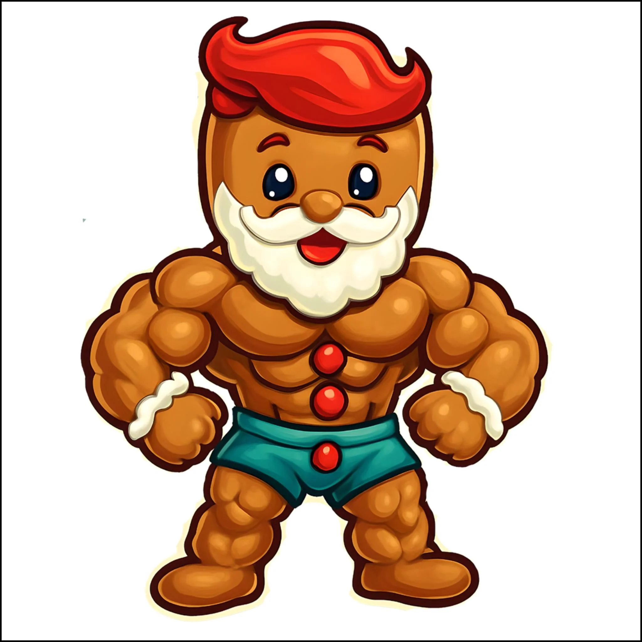 Hand-cut clear acrylic ornament featuring a bold, playful Santa bodybuilder illustration. The image is printed on one side and shines through the transparent acrylic for extra depth and color when hung. A cheerful red ribbon is included so it’s ready to hang on a tree, wreath, or wall. This piece brings light-hearted humor to holiday decor and fits right in with festive, fitness-minded, or novelty collections.