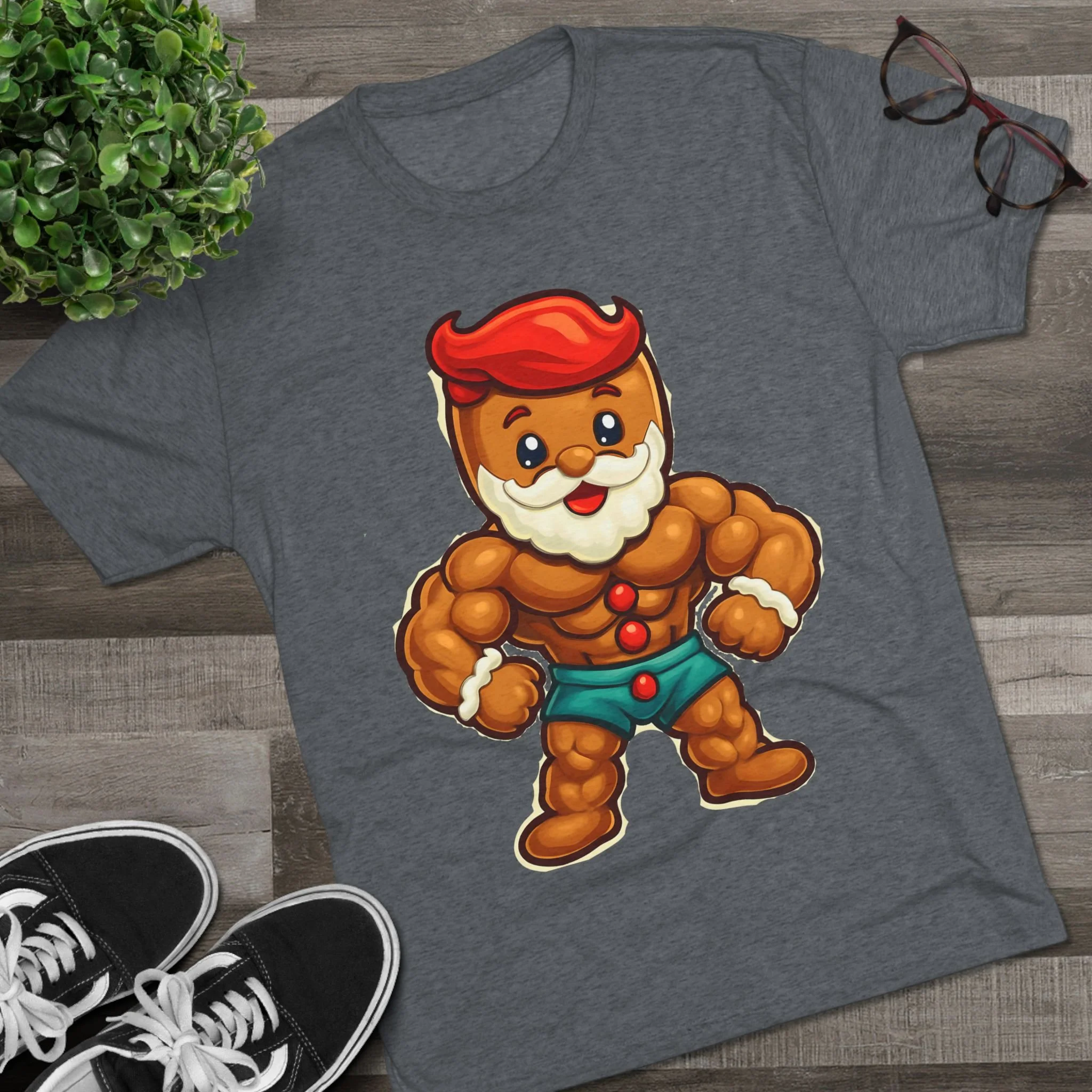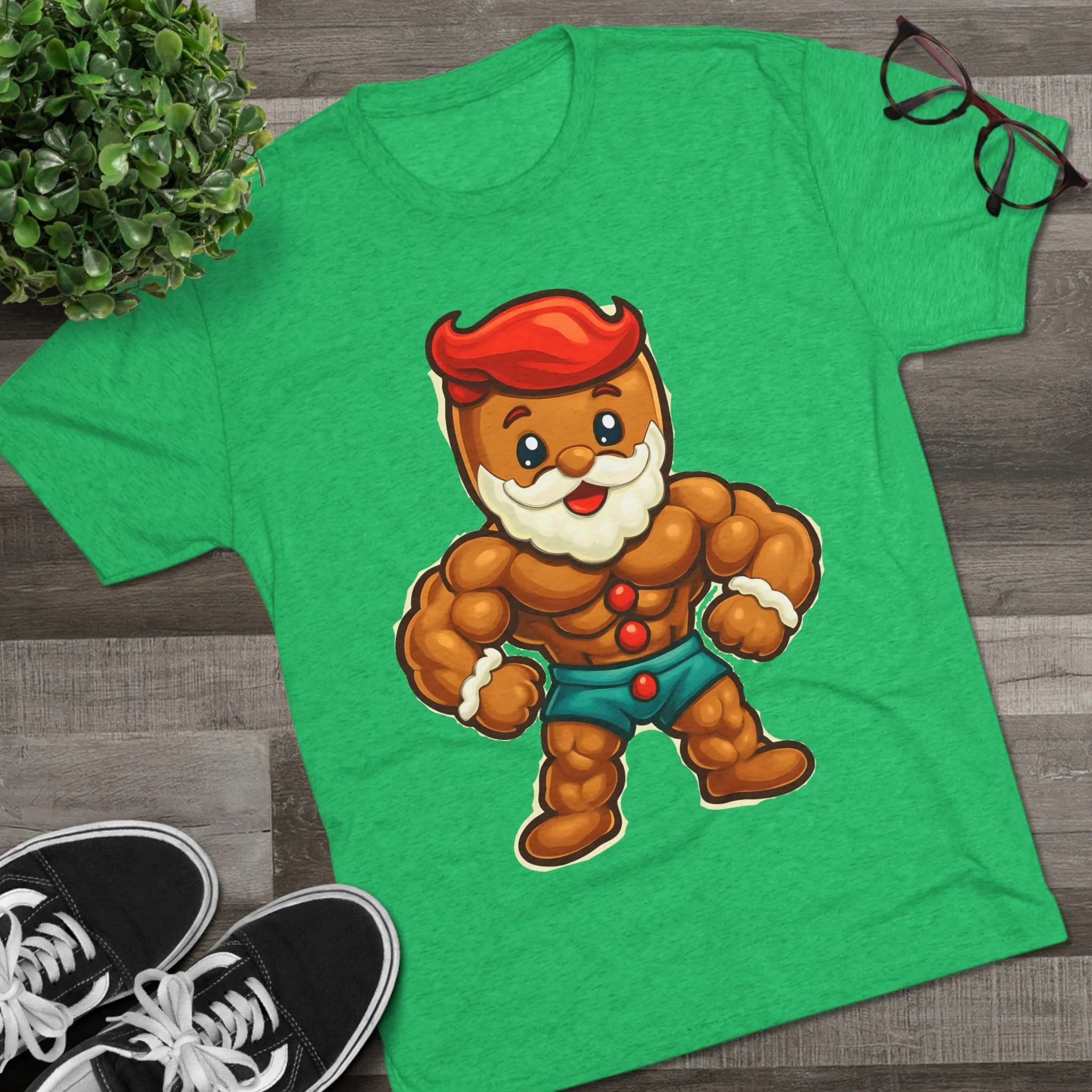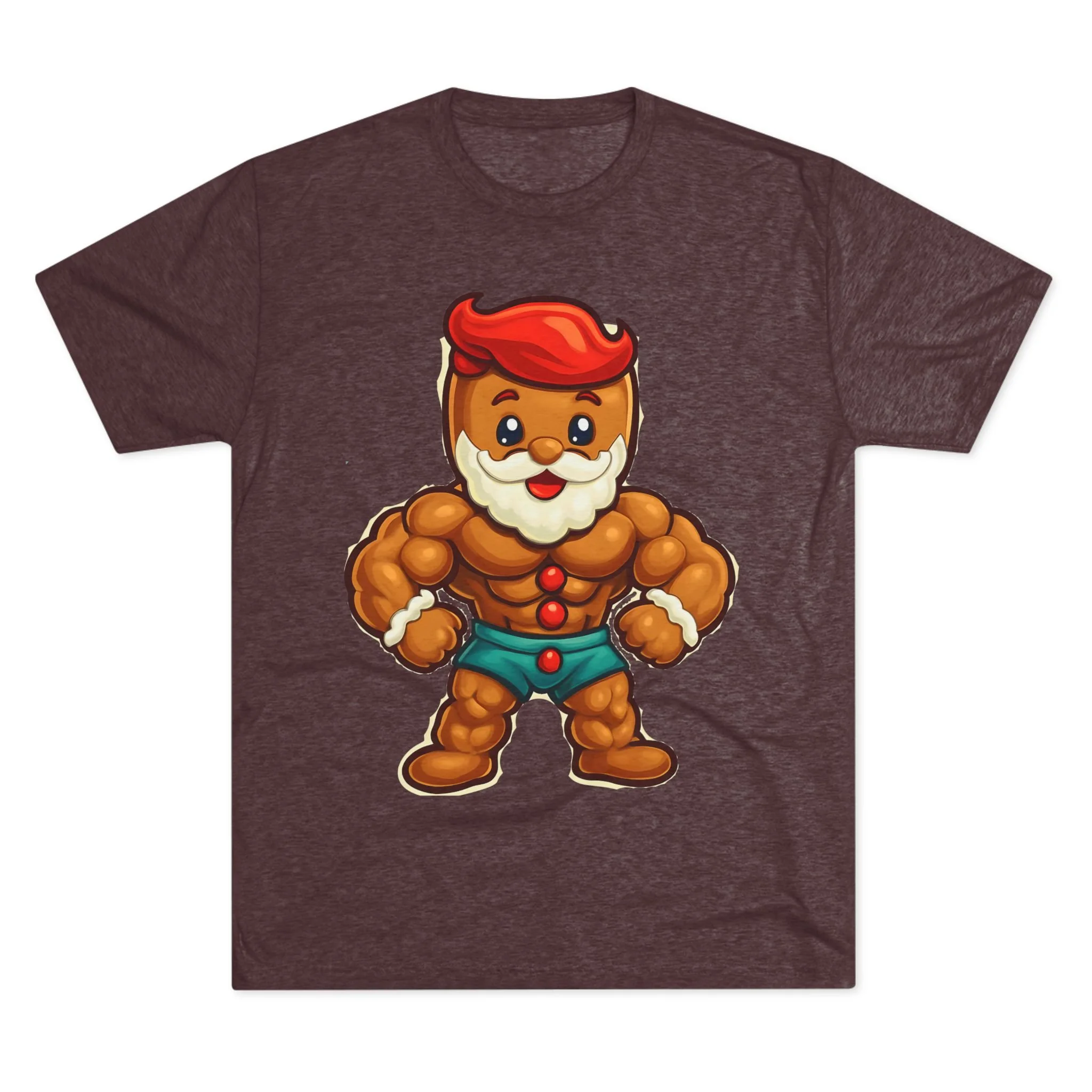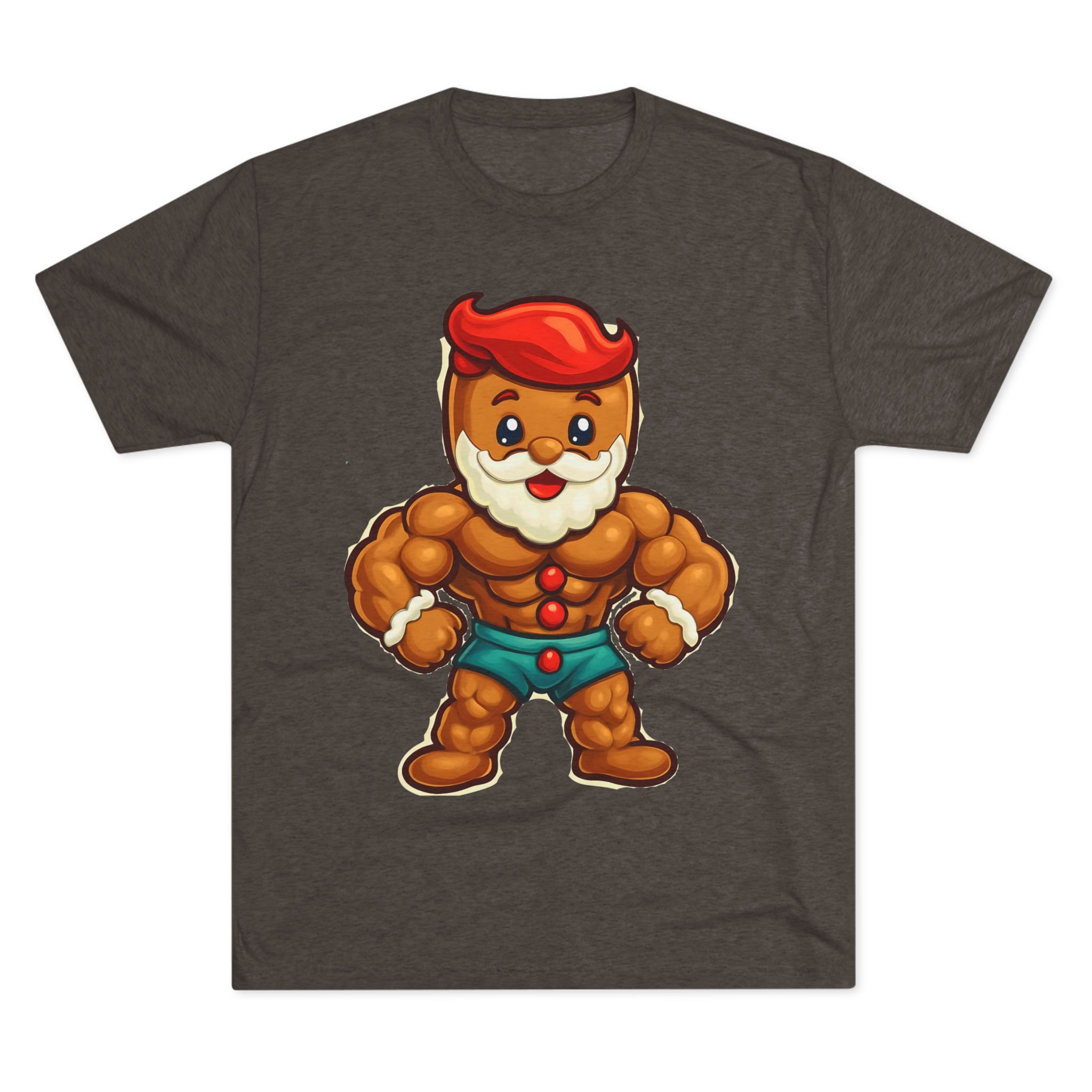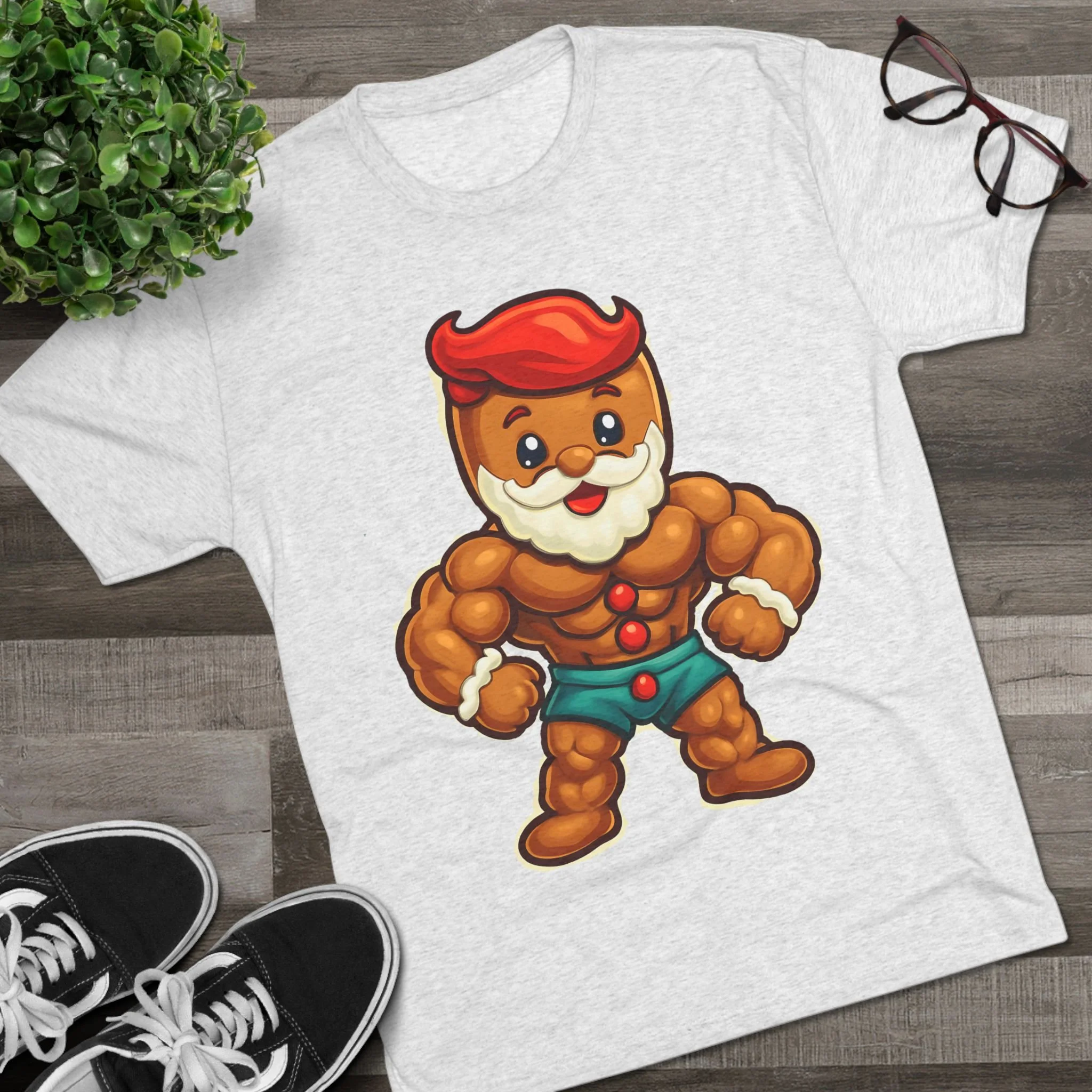 Meet a soft, lightweight crew tee that brings playful strength to everyday wear. The front features a bold, cartoon-style muscular gingerbread character—bright hair, buttoned shorts, and a confident stance—that adds humor and personality to your outfit. The fabric drapes smoothly and feels almost silky against the skin, so the tee moves with you whether you’re running errands, grabbing coffee, or lounging at home. A small, subtle logo on the upper back keeps the design balanced and adds a refined finishing touch. Wear it when you want something fun that still feels comfortable and thoughtfully made.
