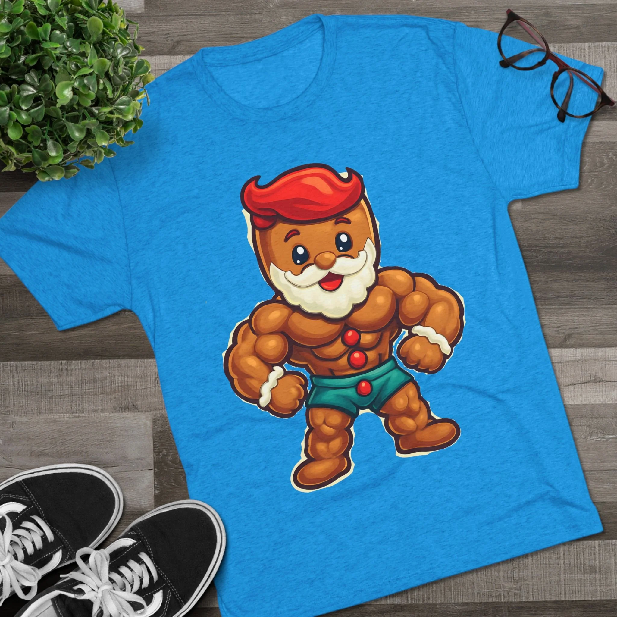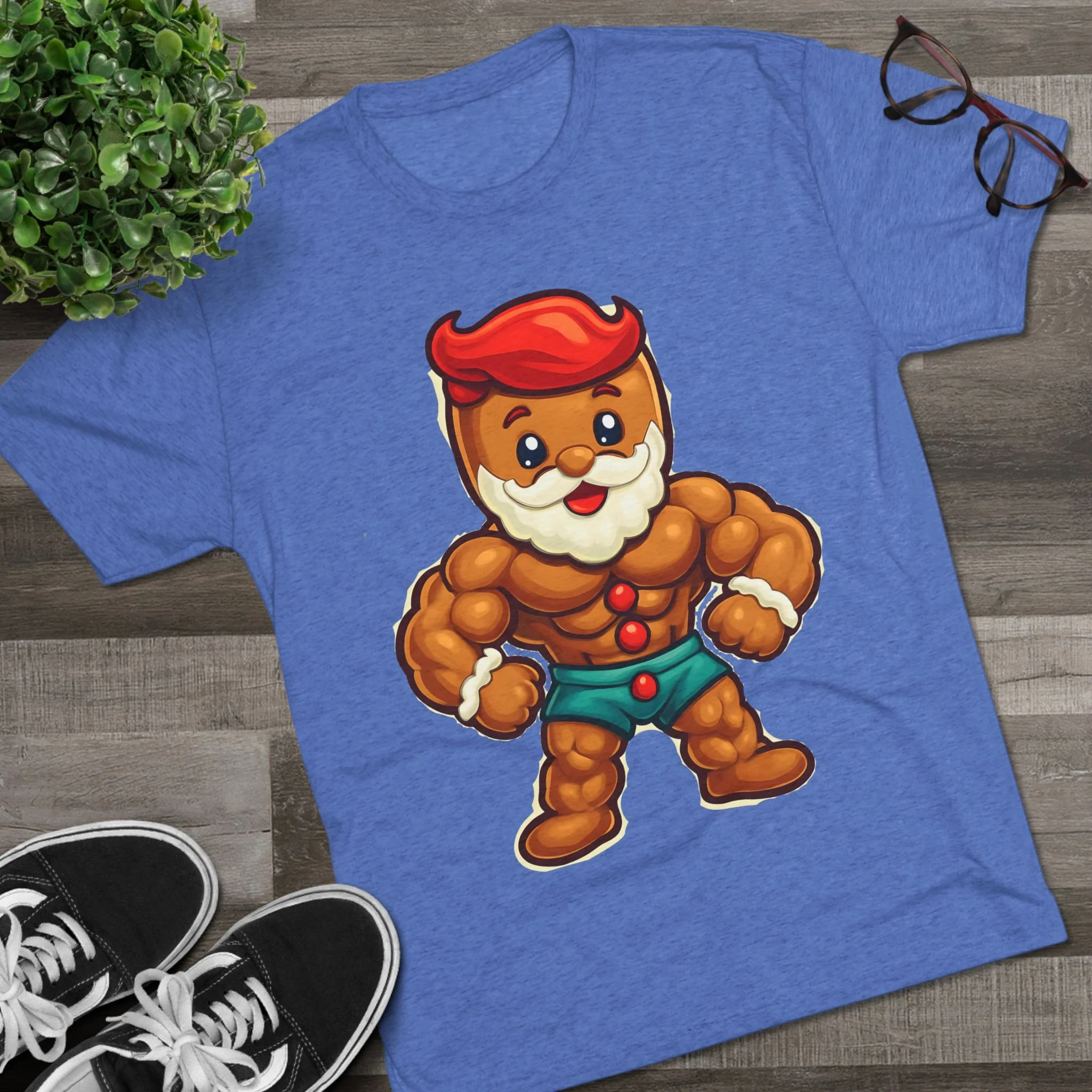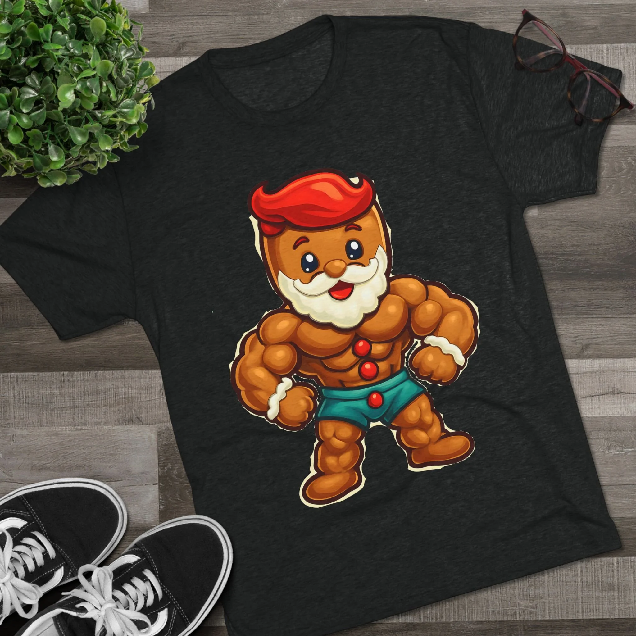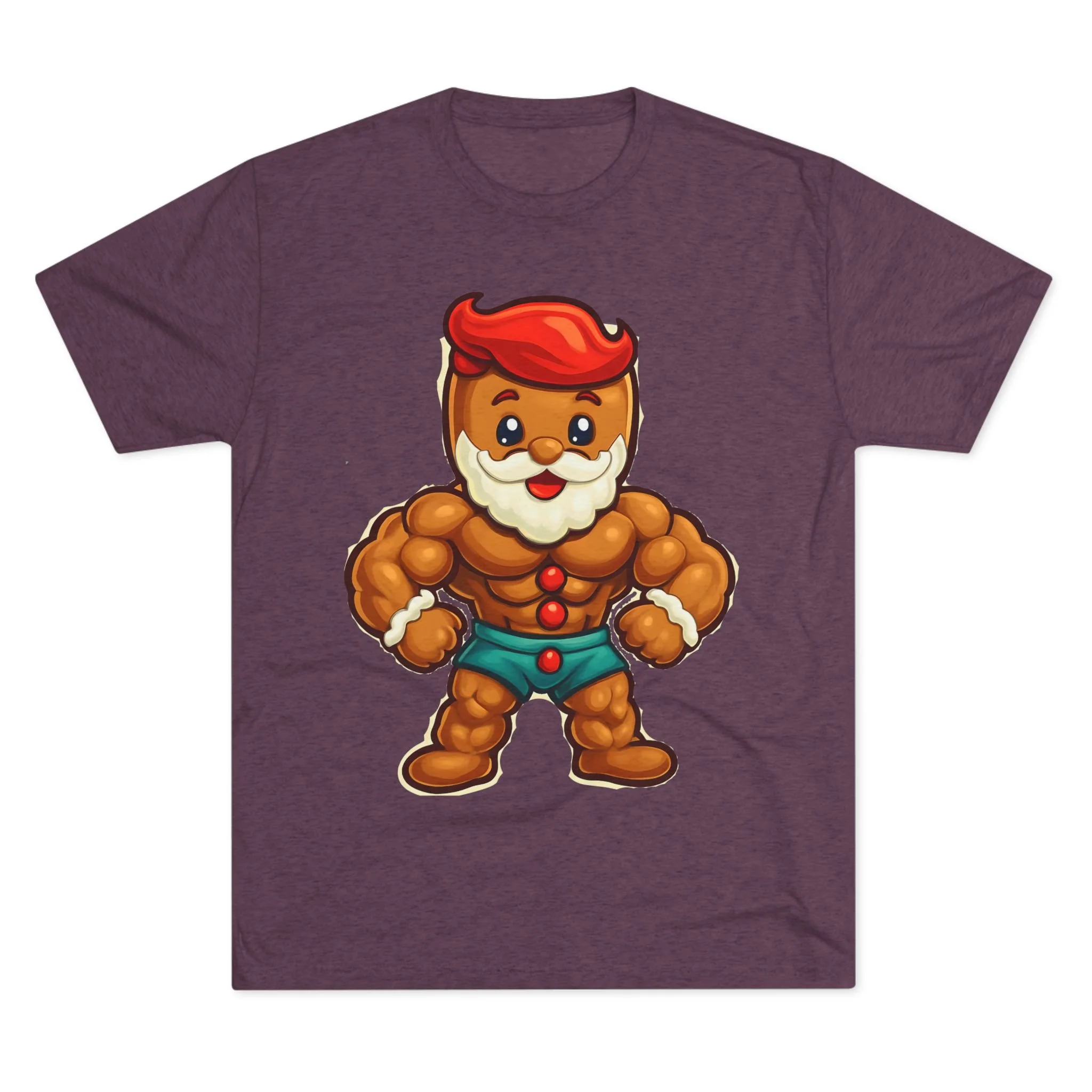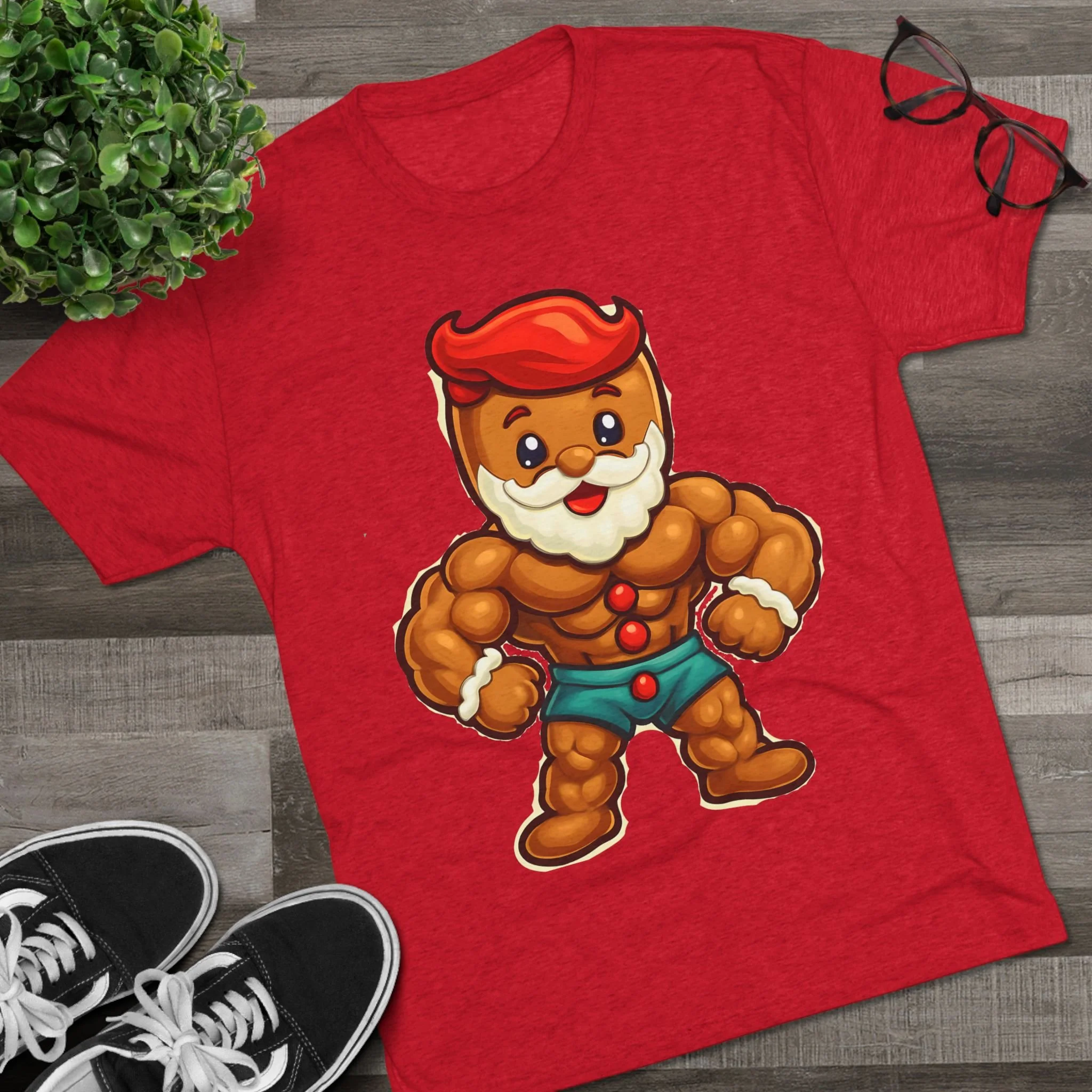 Meet a soft, lightweight crew tee that brings playful strength to everyday wear. The front features a bold, cartoon-style muscular gingerbread character—bright hair, buttoned shorts, and a confident stance—that adds humor and personality to your outfit. The fabric drapes smoothly and feels almost silky against the skin, so the tee moves with you whether you’re running errands, grabbing coffee, or lounging at home. A small, subtle logo on the upper back keeps the design balanced and adds a refined finishing touch. Wear it when you want something fun that still feels comfortable and thoughtfully made.