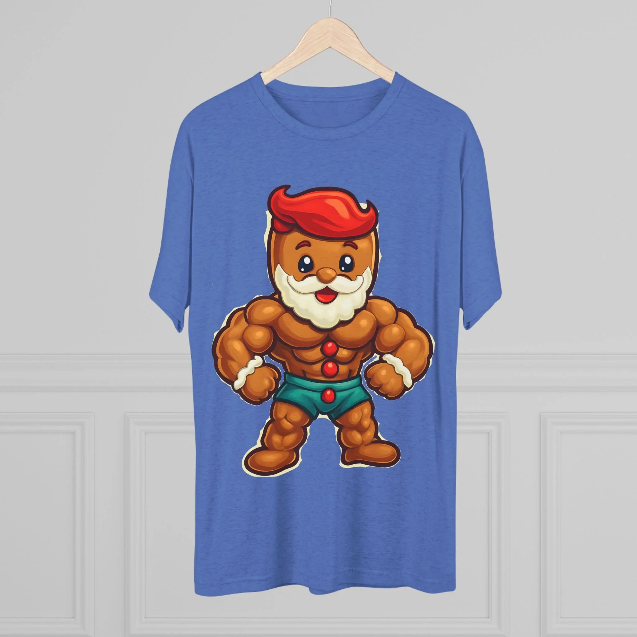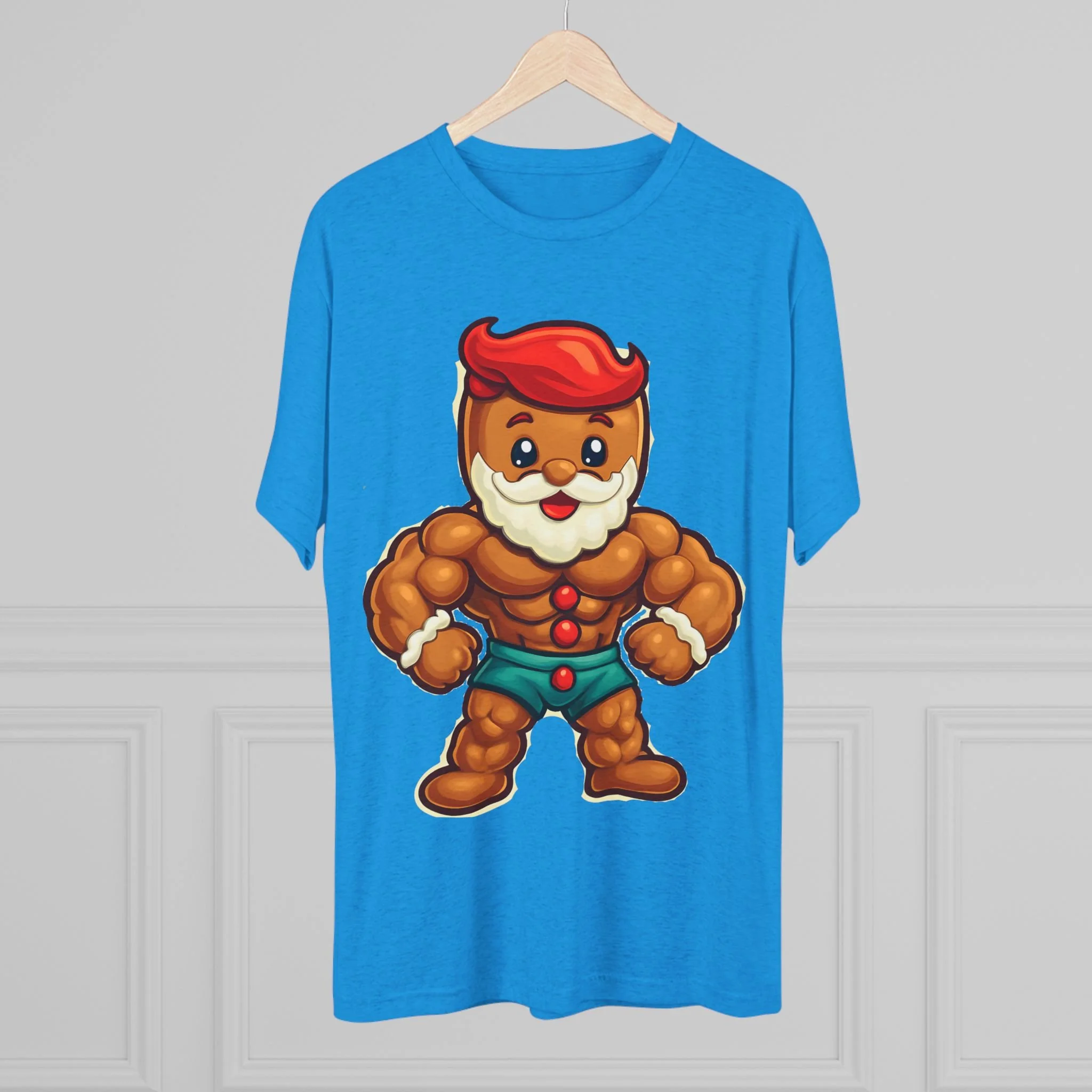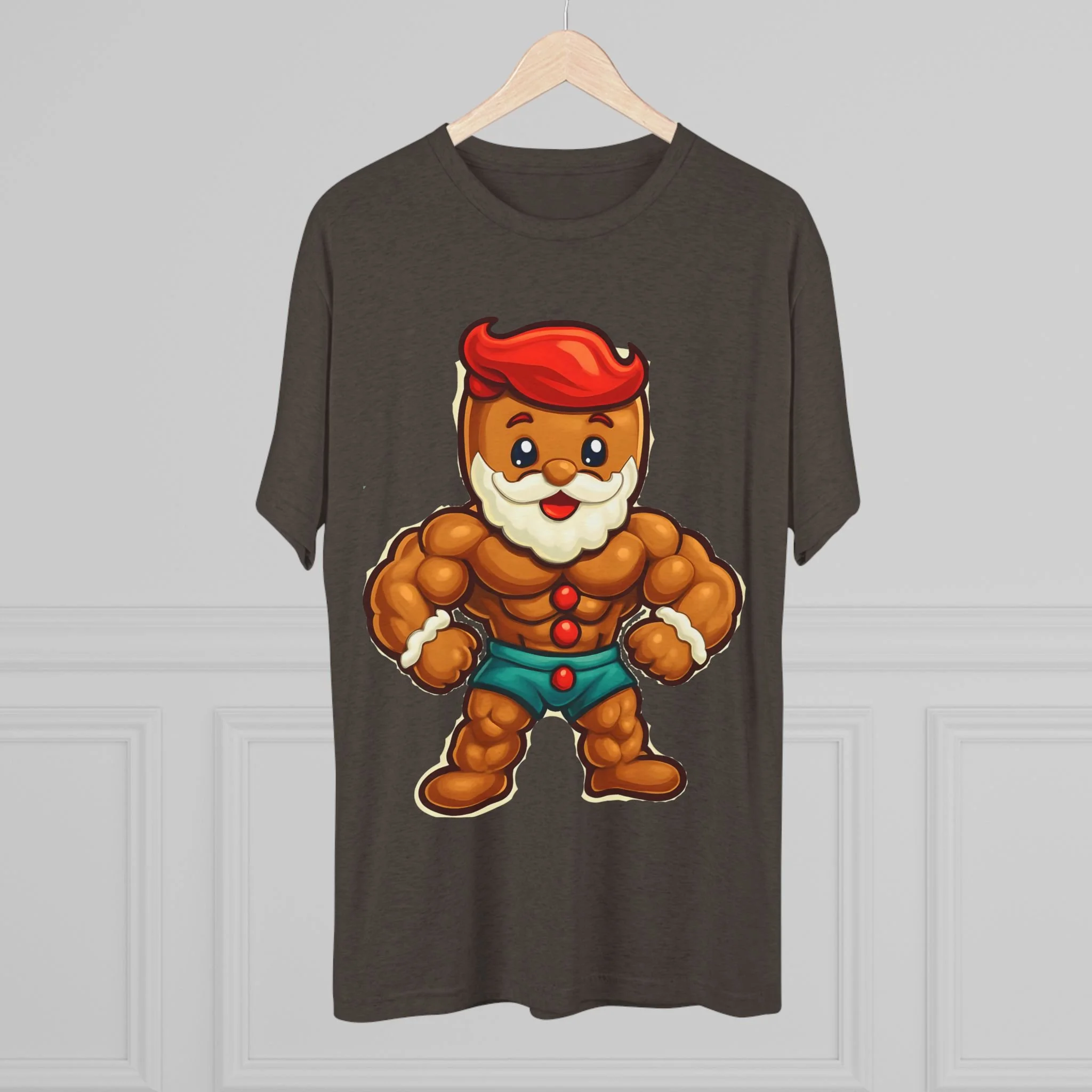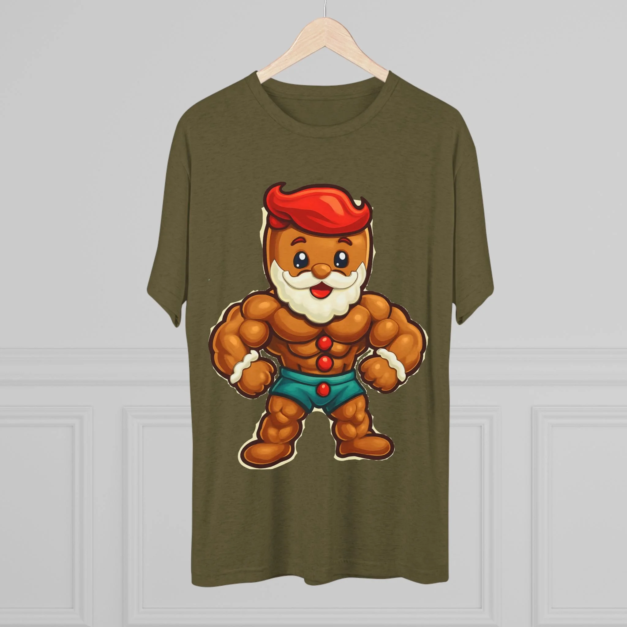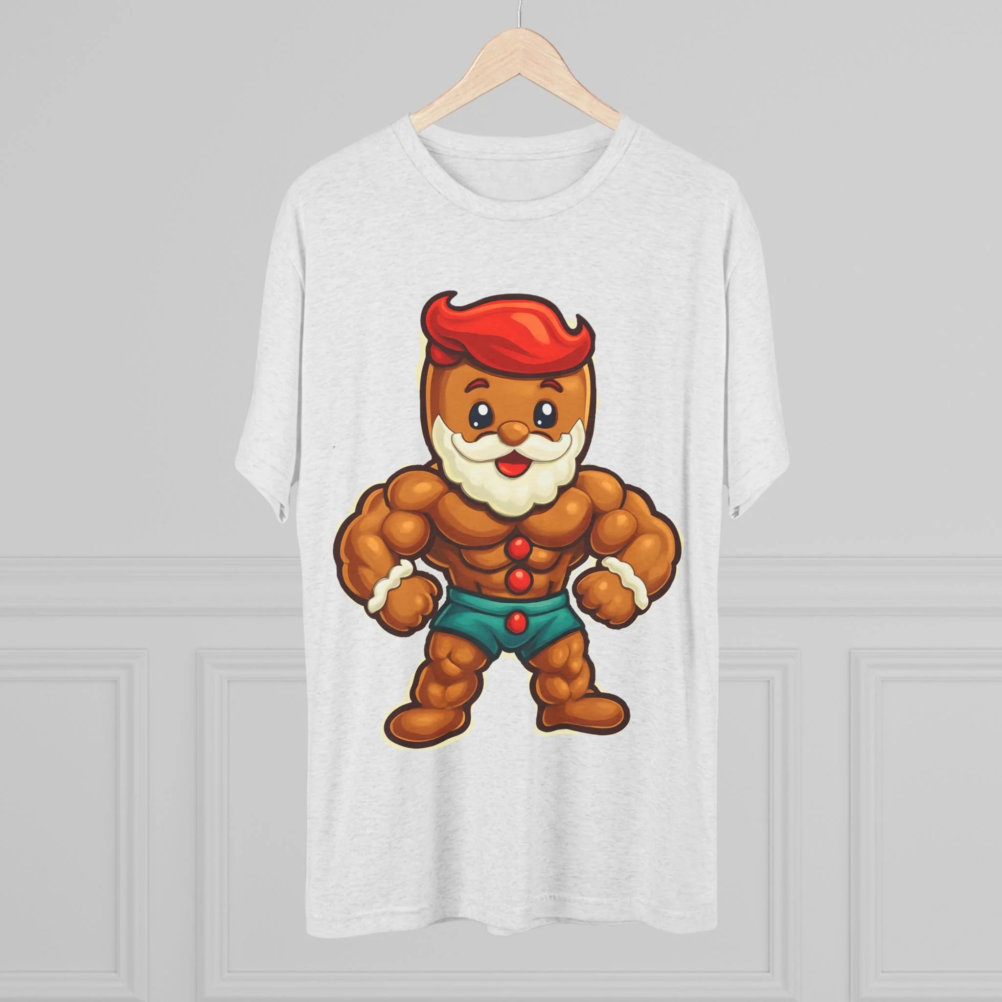 Meet a soft, lightweight crew tee that brings playful strength to everyday wear. The front features a bold, cartoon-style muscular gingerbread character—bright hair, buttoned shorts, and a confident stance—that adds humor and personality to your outfit. The fabric drapes smoothly and feels almost silky against the skin, so the tee moves with you whether you’re running errands, grabbing coffee, or lounging at home. A small, subtle logo on the upper back keeps the design balanced and adds a refined finishing touch. Wear it when you want something fun that still feels comfortable and thoughtfully made.