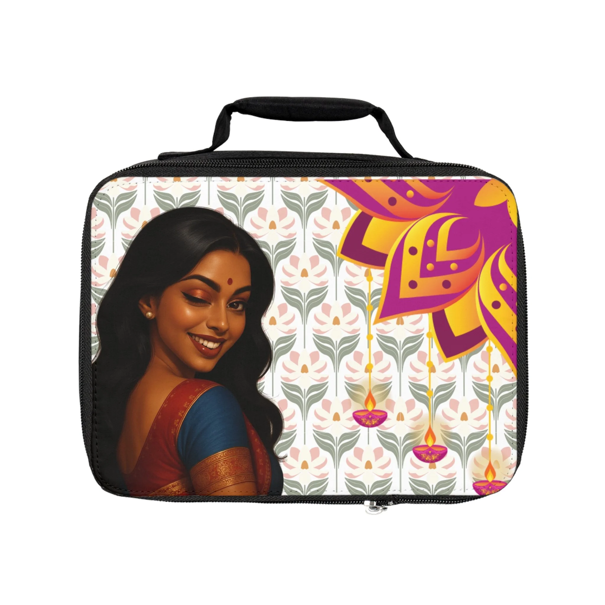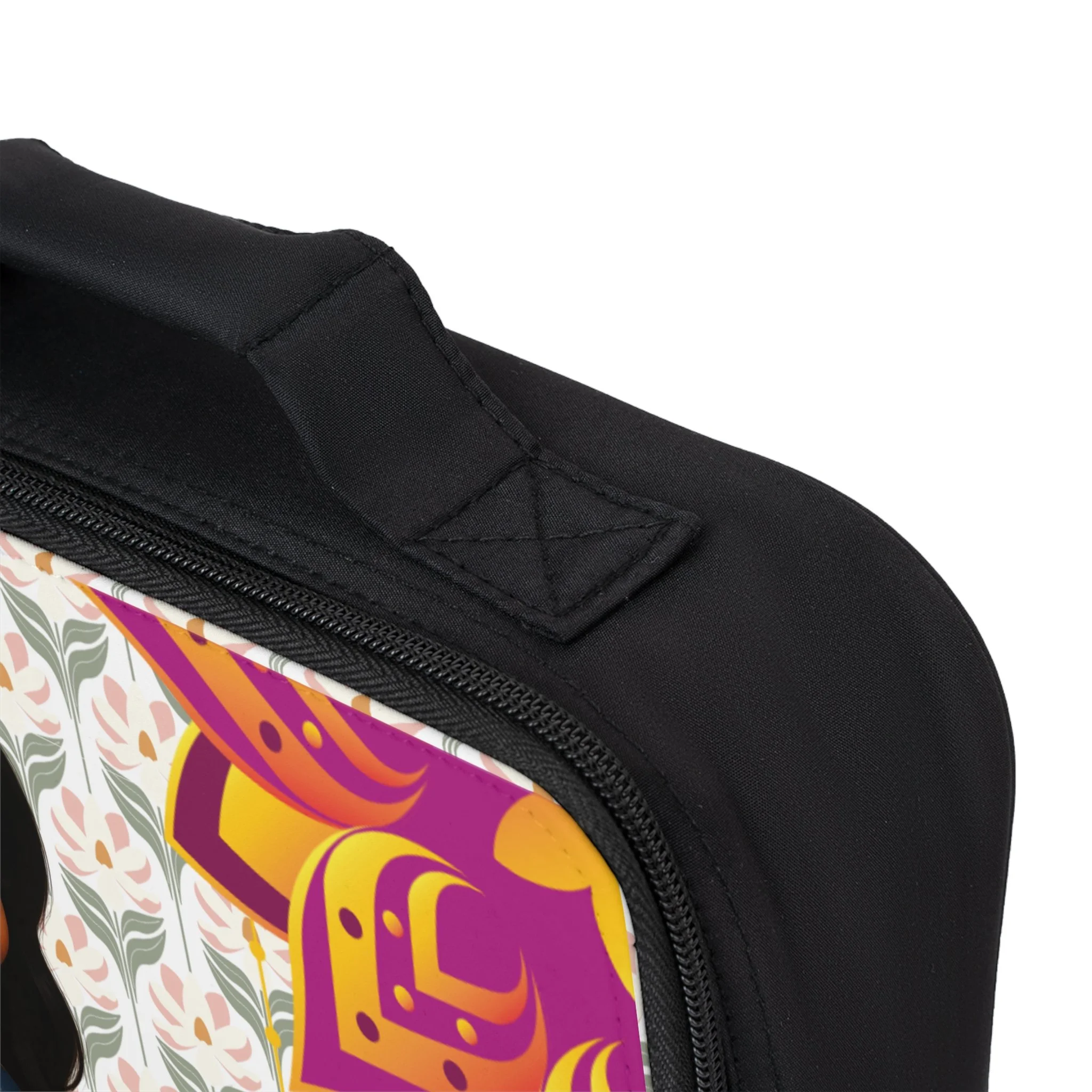 Product features - Insulated and fully lined interior for temperature control - Removable lid with durable zipper for easy access and secure closure - Top carrying handle for convenient transport - Vibrant, high-quality print on polyester fabric - One size (9.5" × 7" × 2.8") with black base and customizable white area