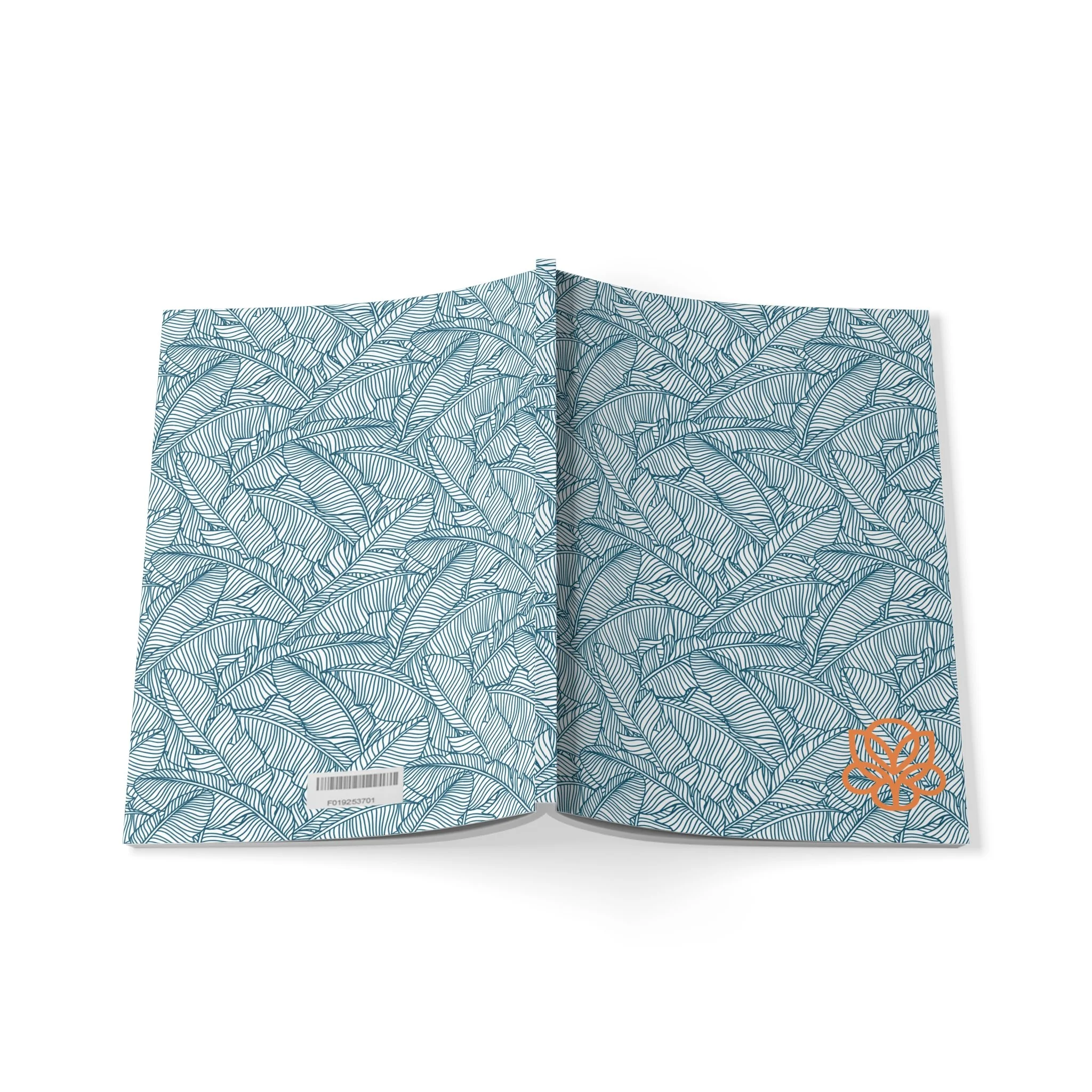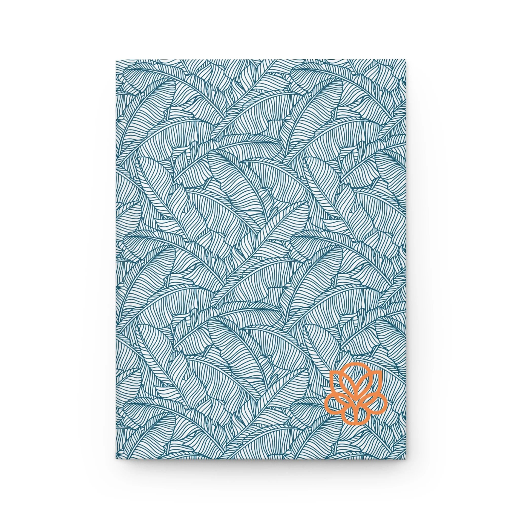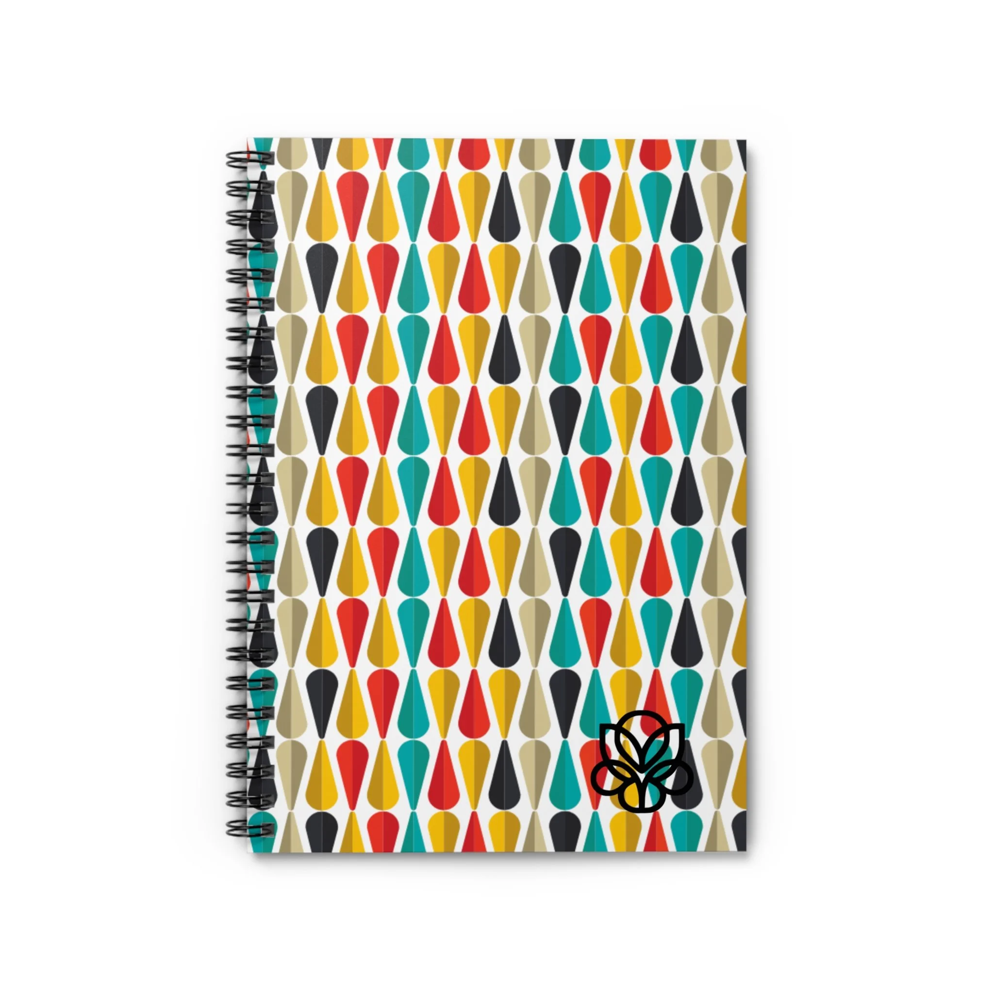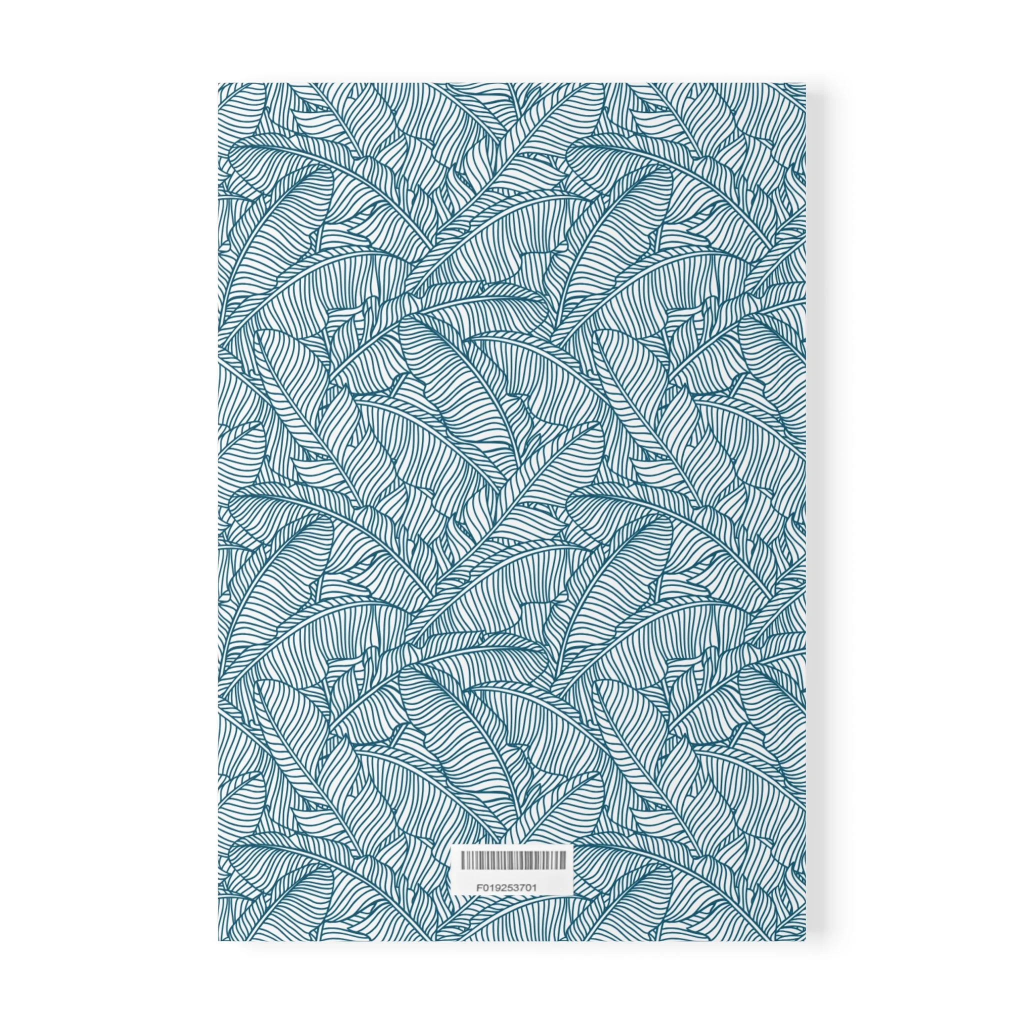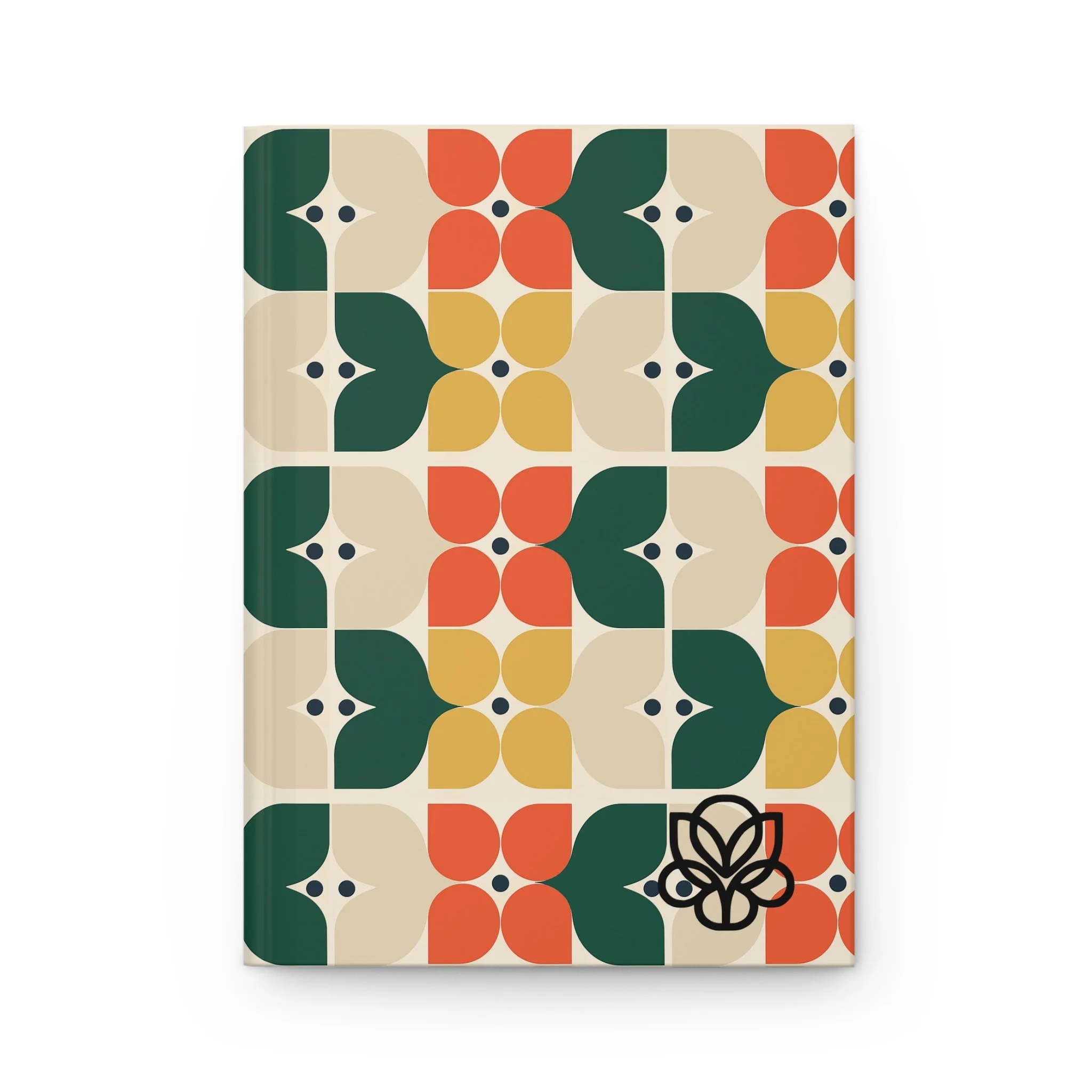 A clay pot with abstract blue, white, and terracotta paint strokes on a neutral background.