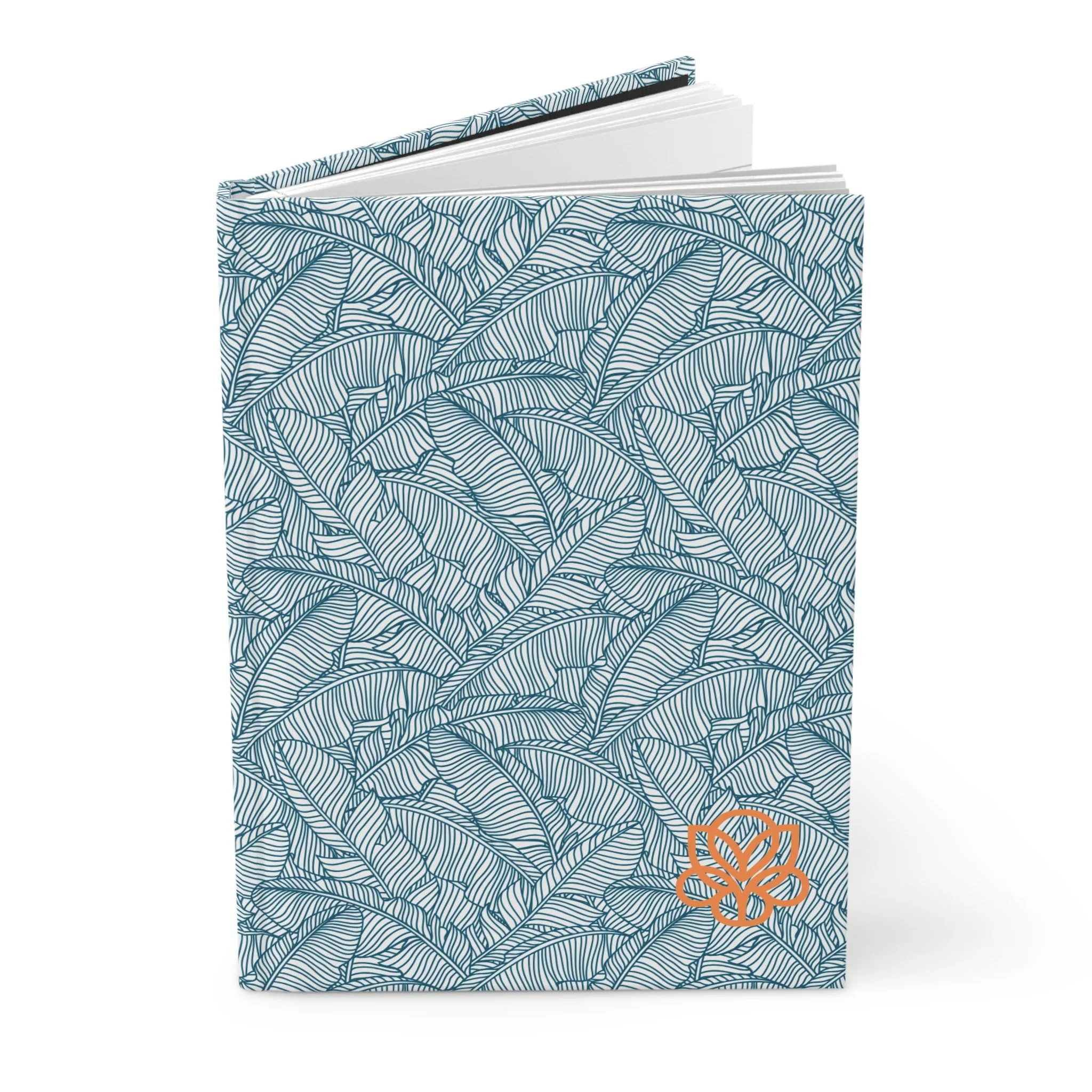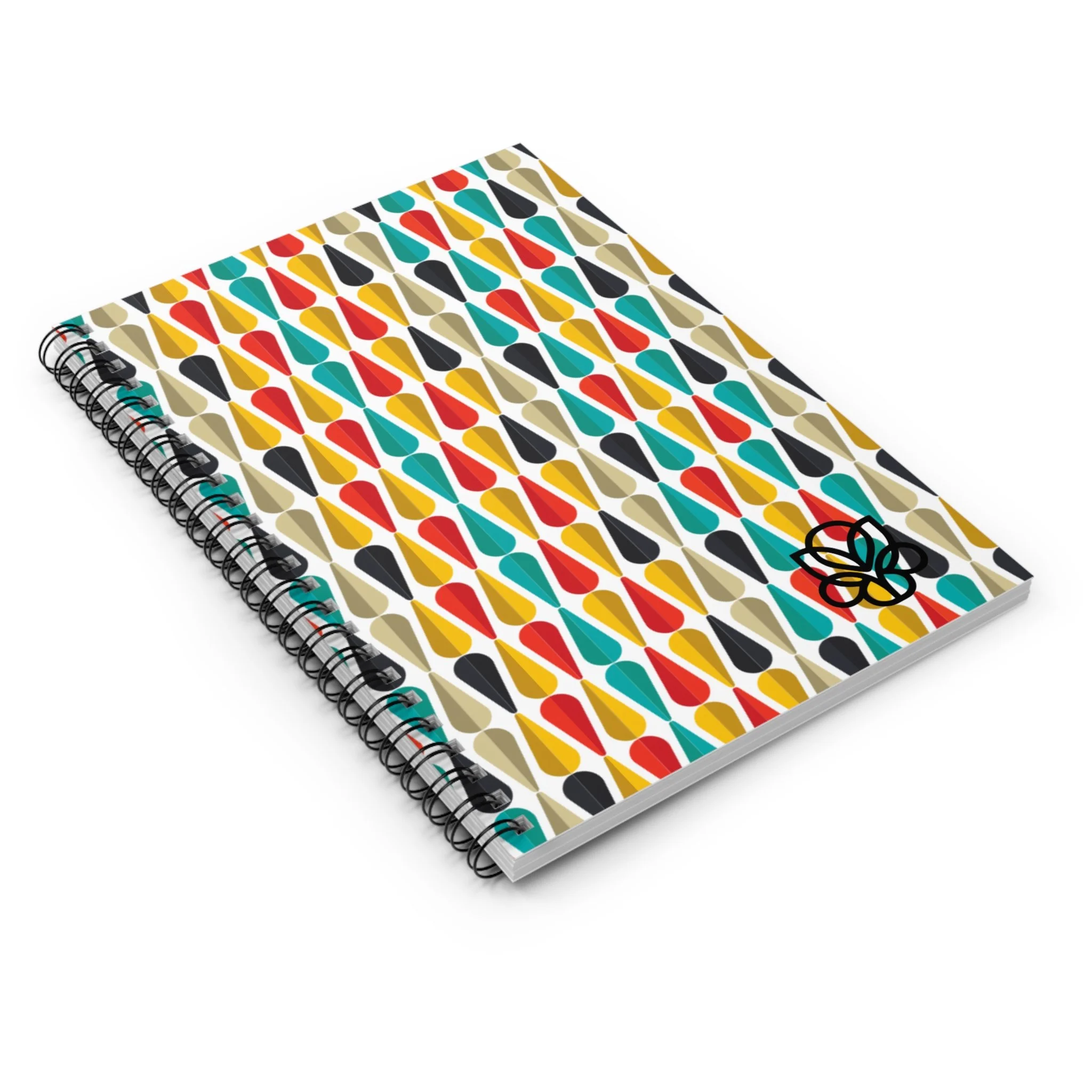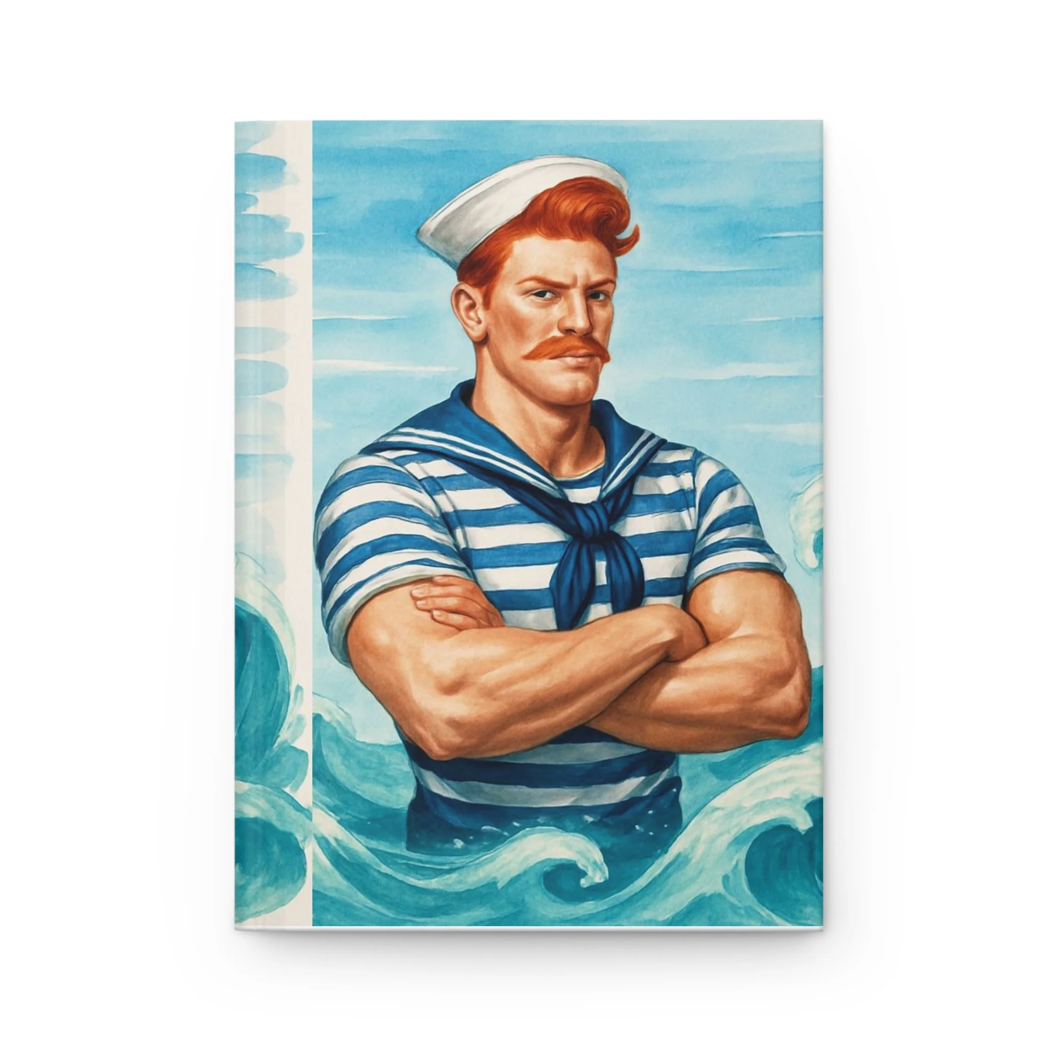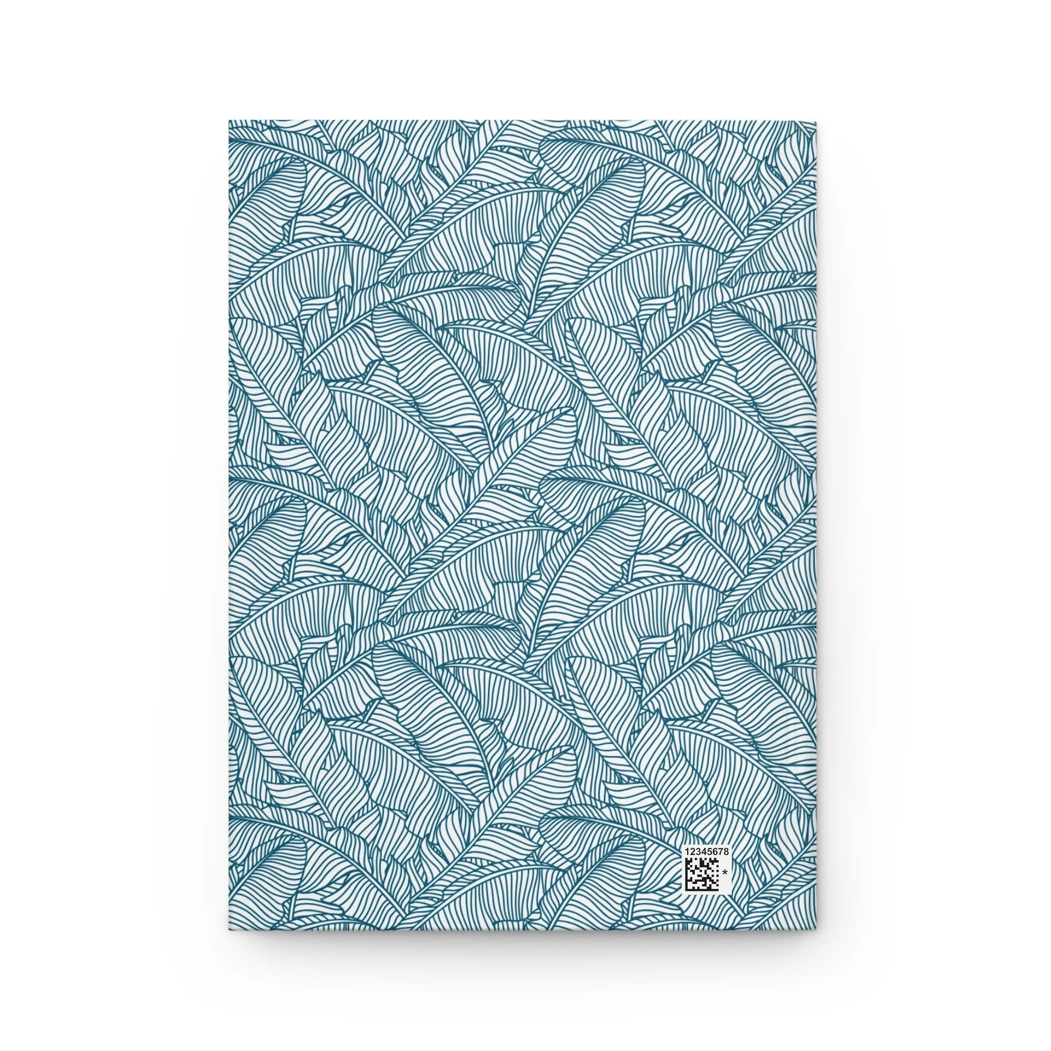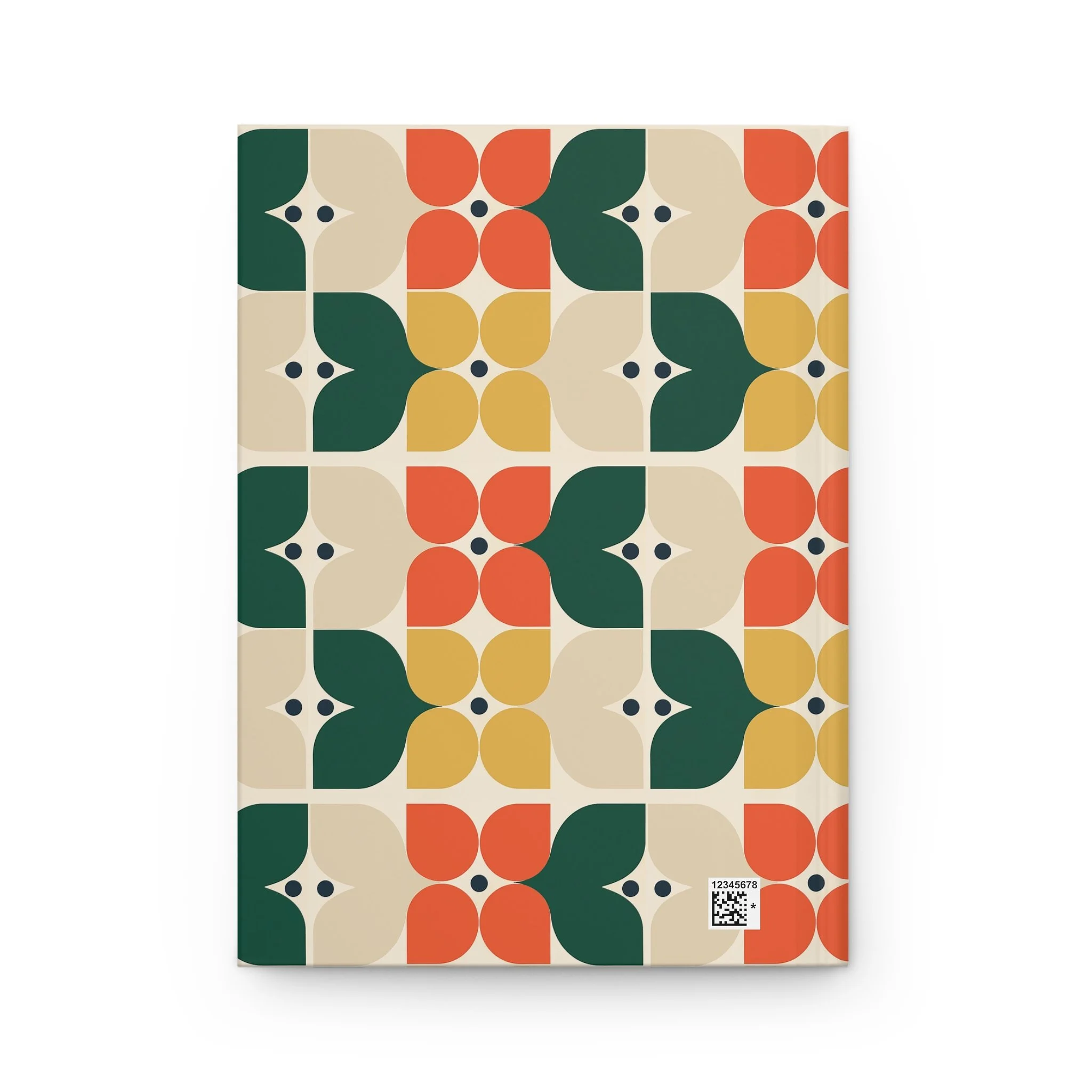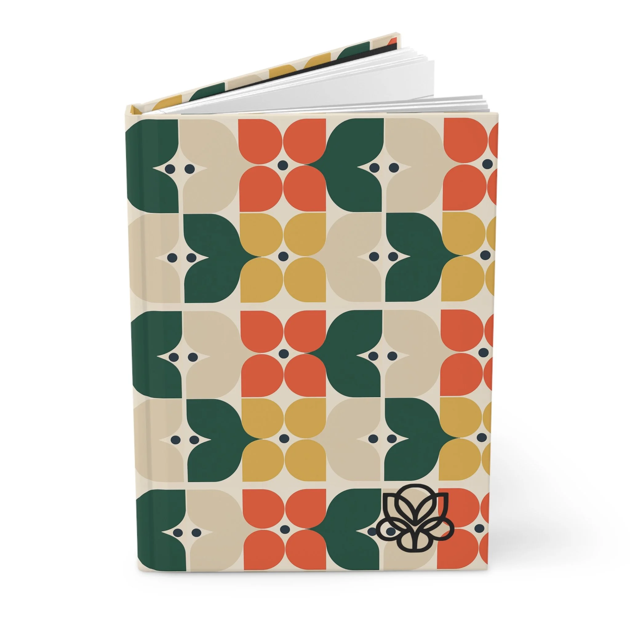 A clay pot with abstract blue, white, and terracotta paint strokes on a neutral background.