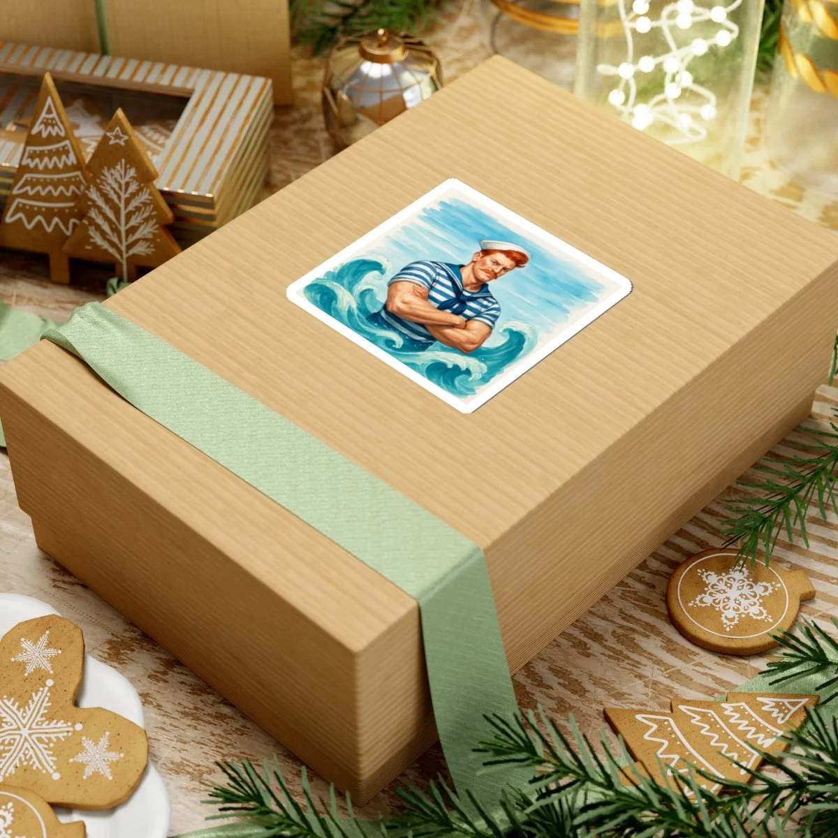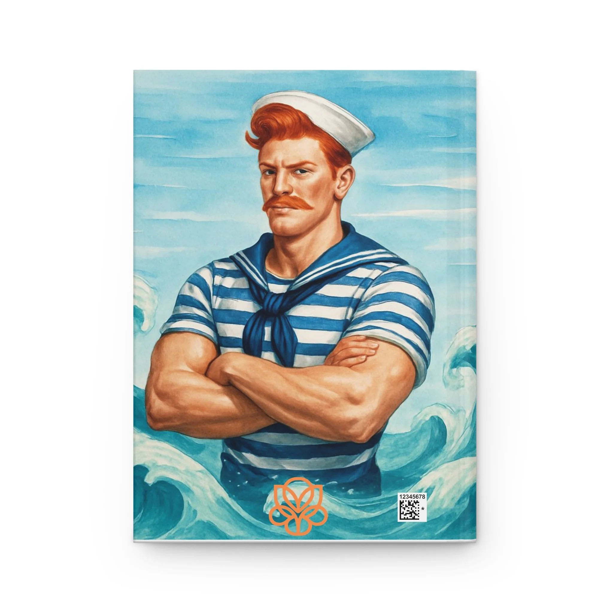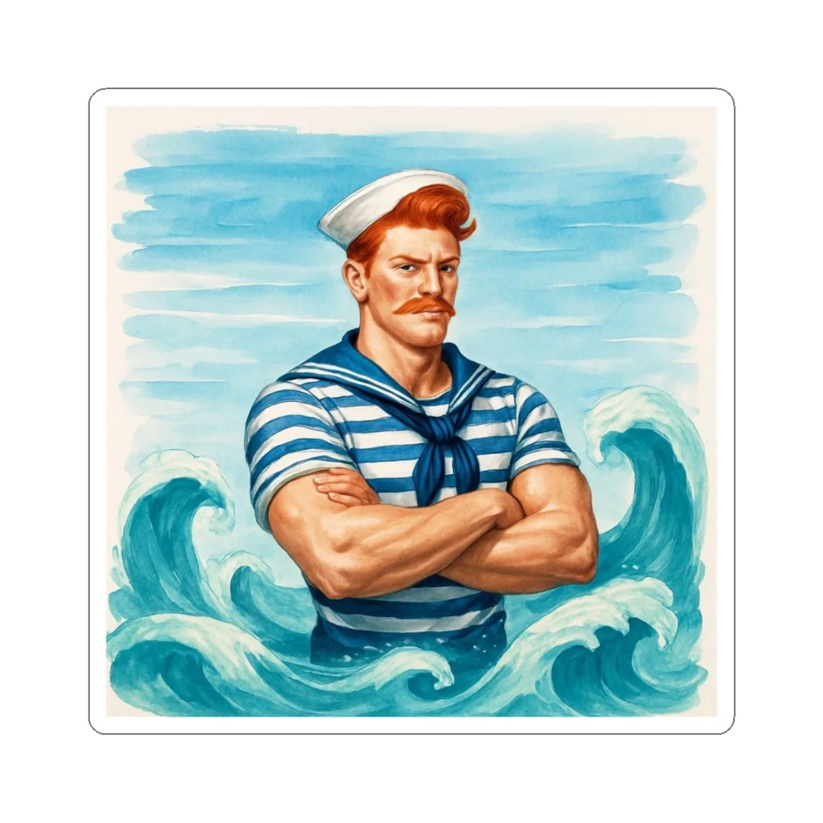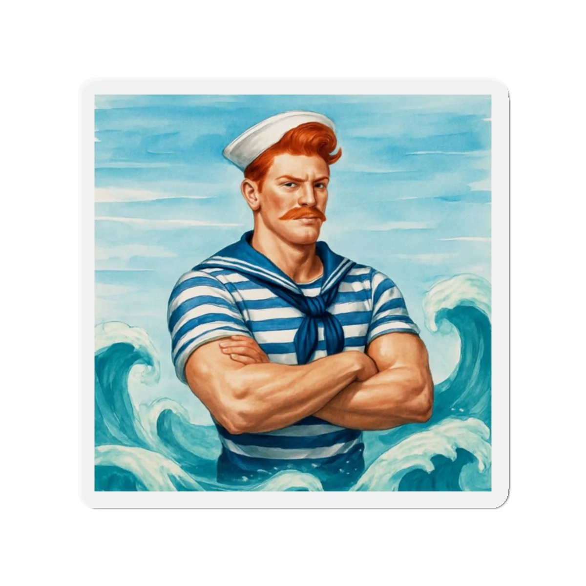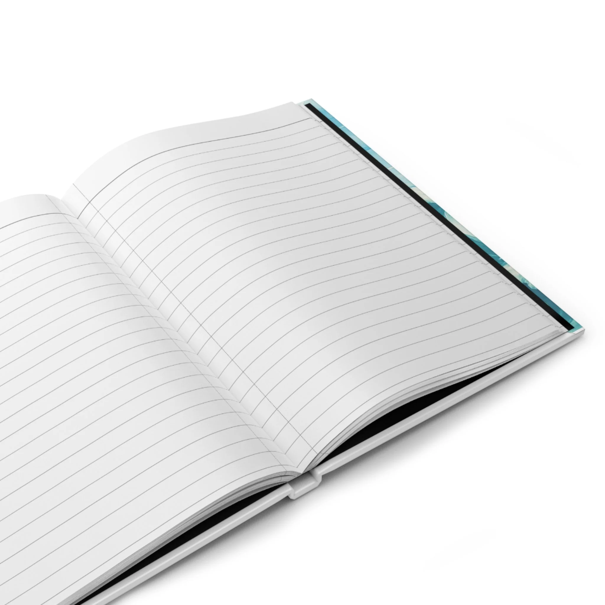 A clay pot with abstract blue, white, and terracotta paint strokes on a neutral background.