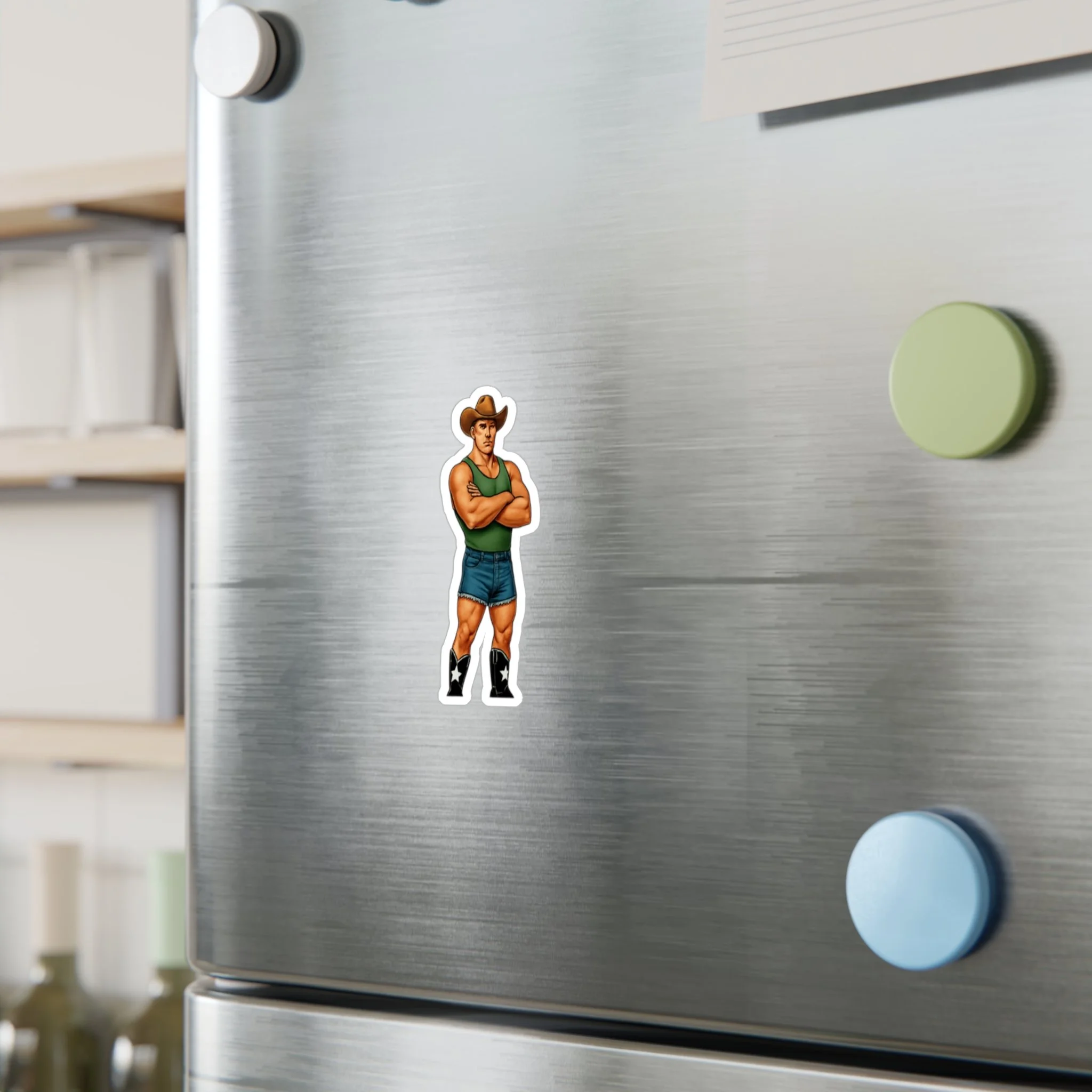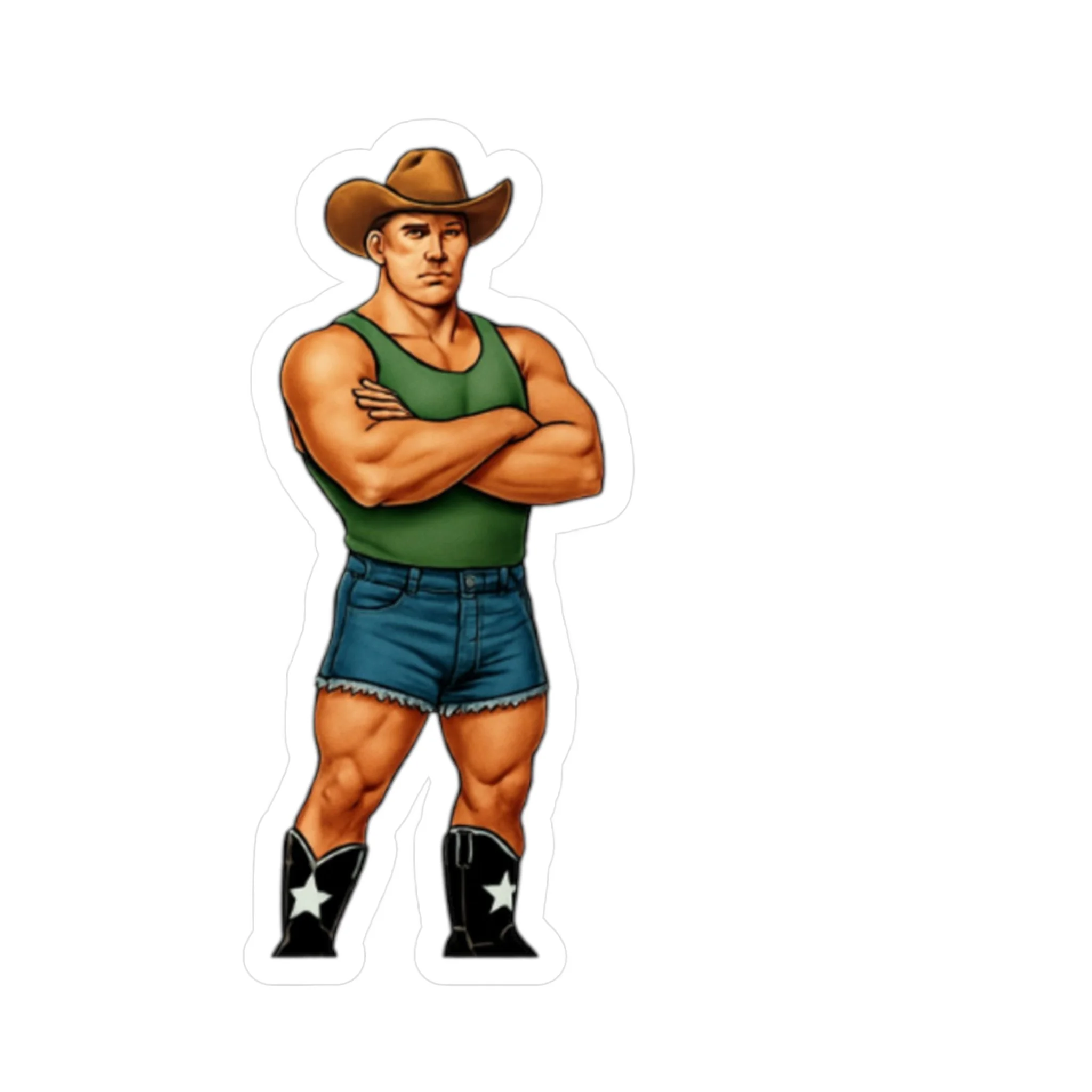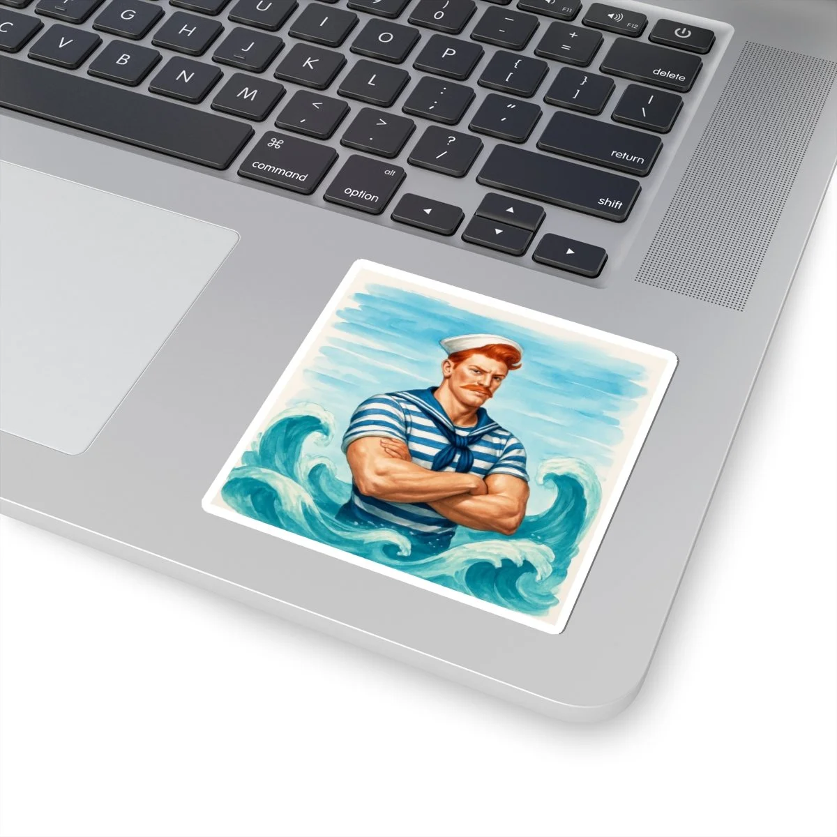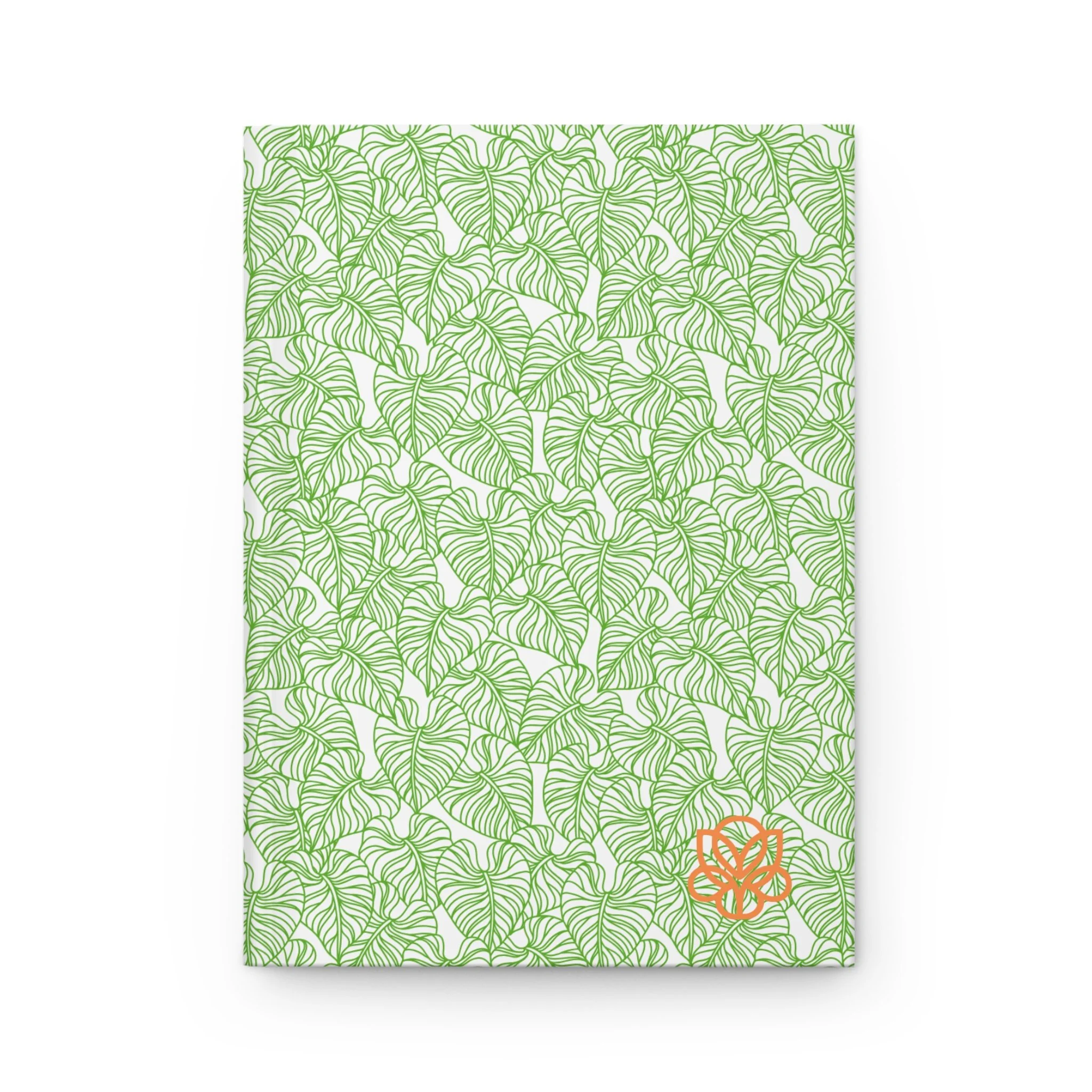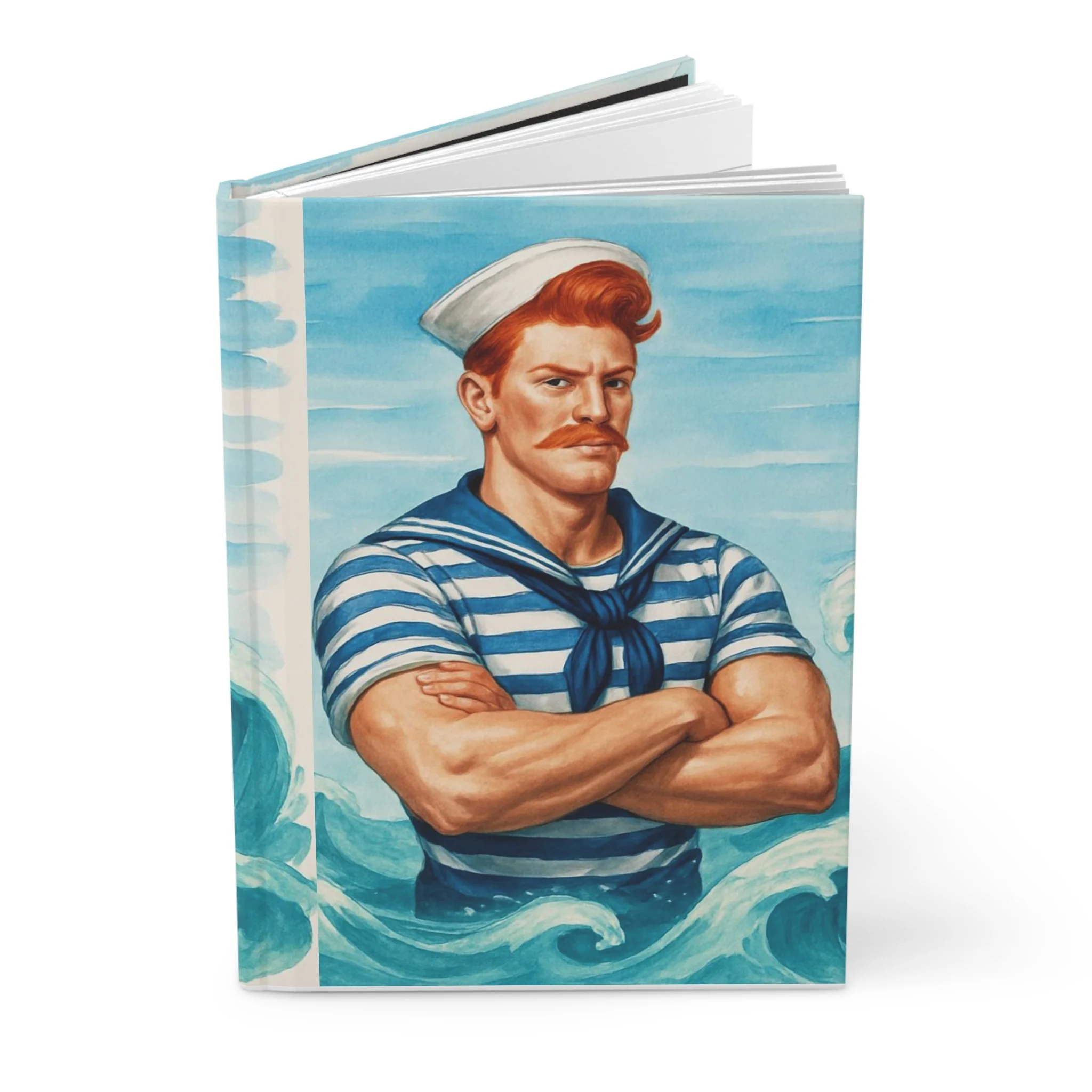 A clay pot with abstract blue, white, and terracotta paint strokes on a neutral background.
