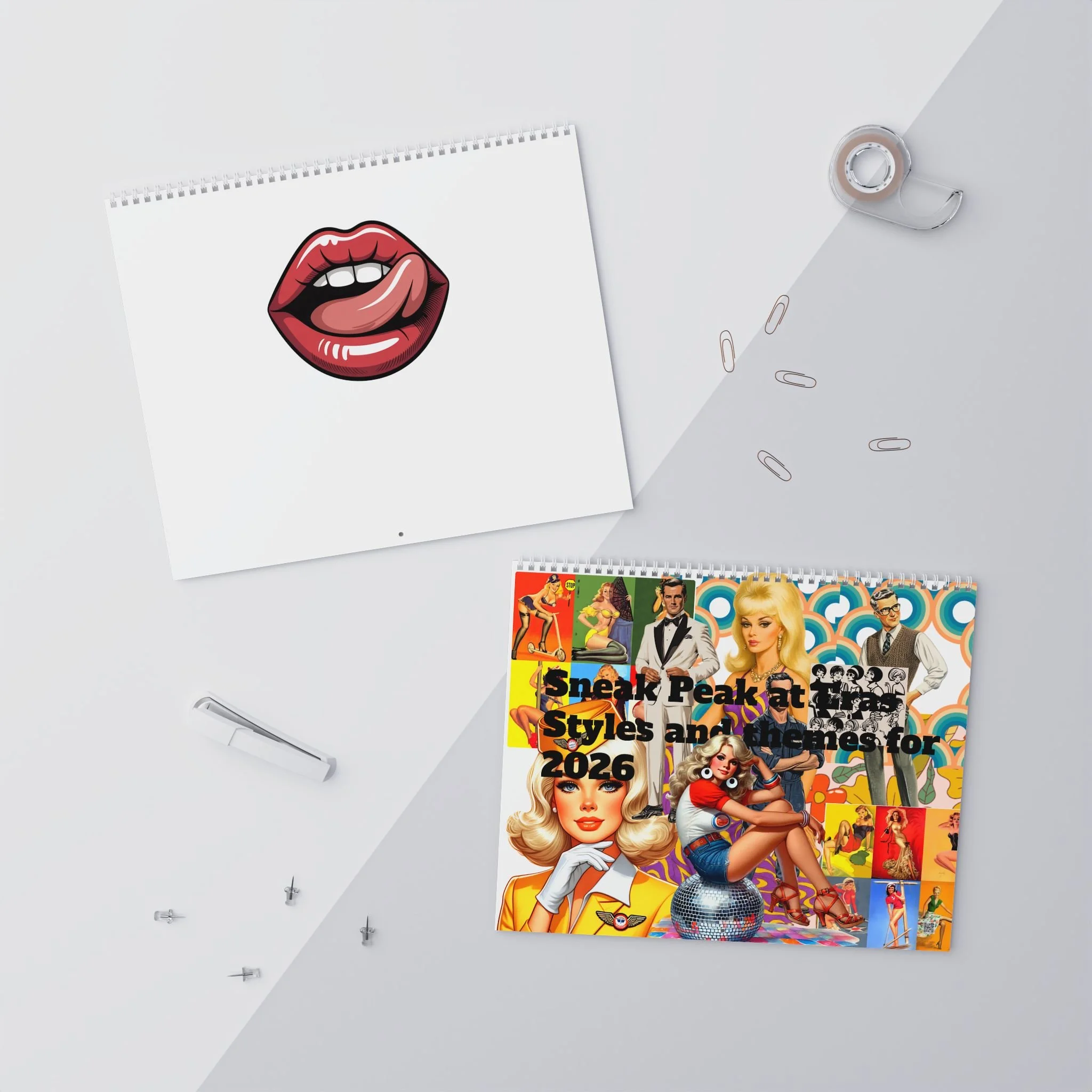 A vibrant 2026 wall calendar that brings bold pinup-style artwork into your everyday routine. Each month features a large, high-contrast illustration with vintage-glam flair above a clean, writable month grid. The pages use thick, premium paper stock so images pop and the matte grid stays smear-free when you write notes, appointments, or meal plans. Wire spiral binding and a centered hanging hole make it simple to flip months and display the calendar anywhere — kitchen, studio, or office. Two size choices let you pick a compact matte version or a larger glossy one while keeping the grid matte for easy pen use. Small QR codes on the back add a modern touch for quick access to further info or digital extras.